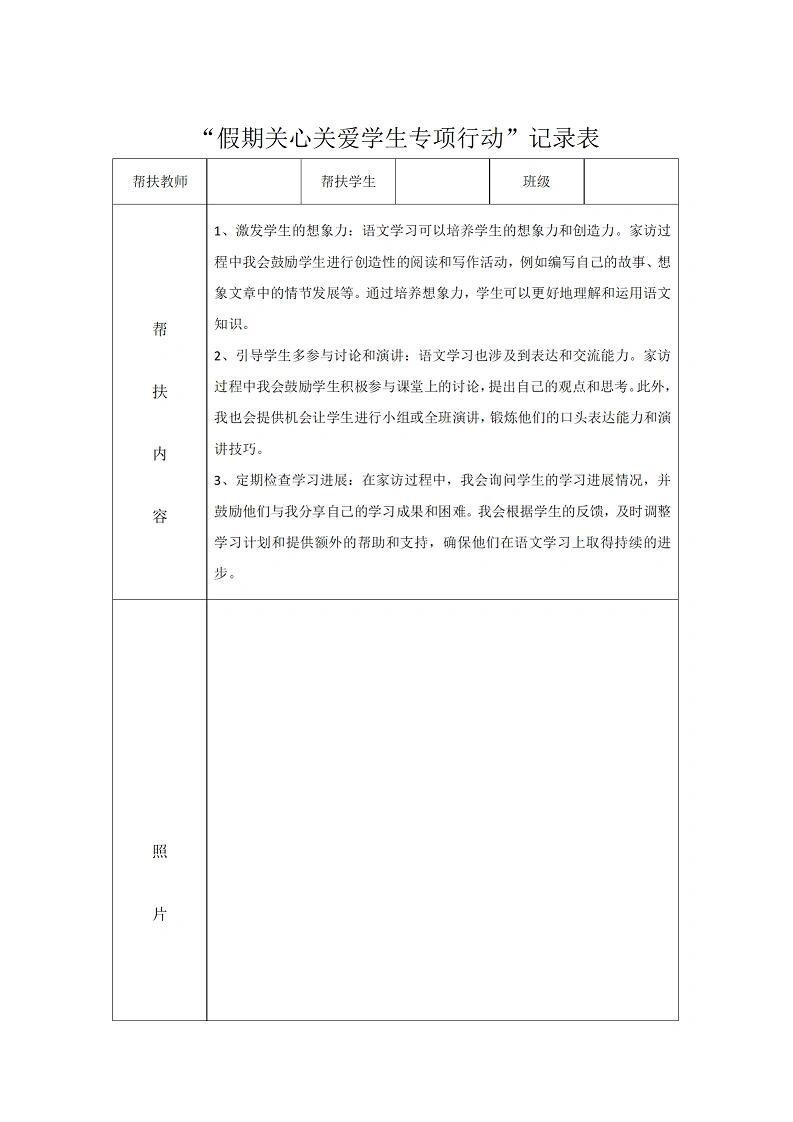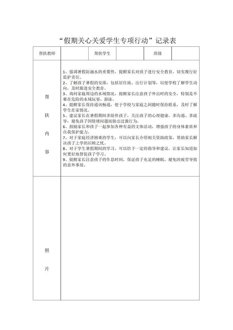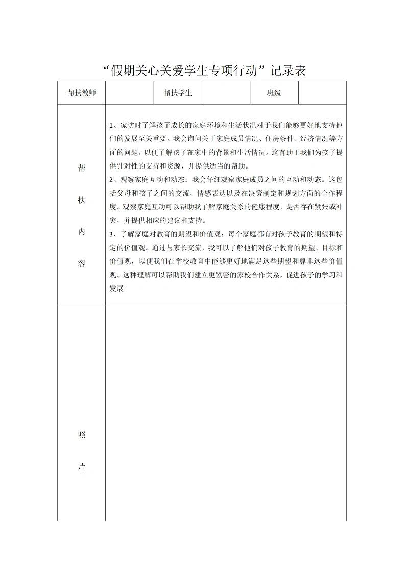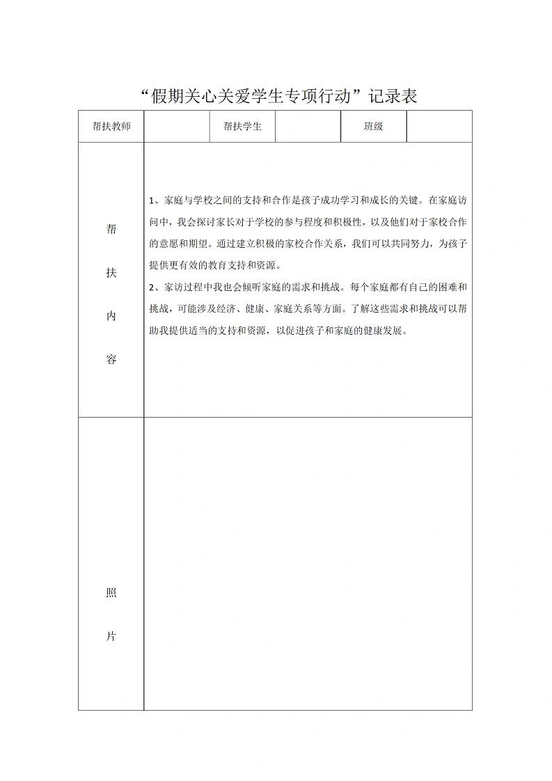 教师暑期学生家访记录表