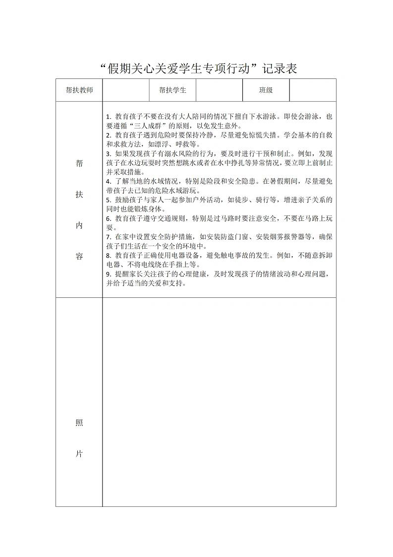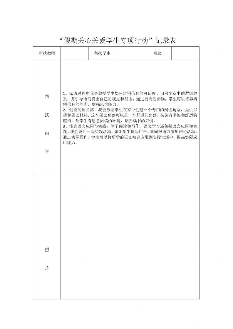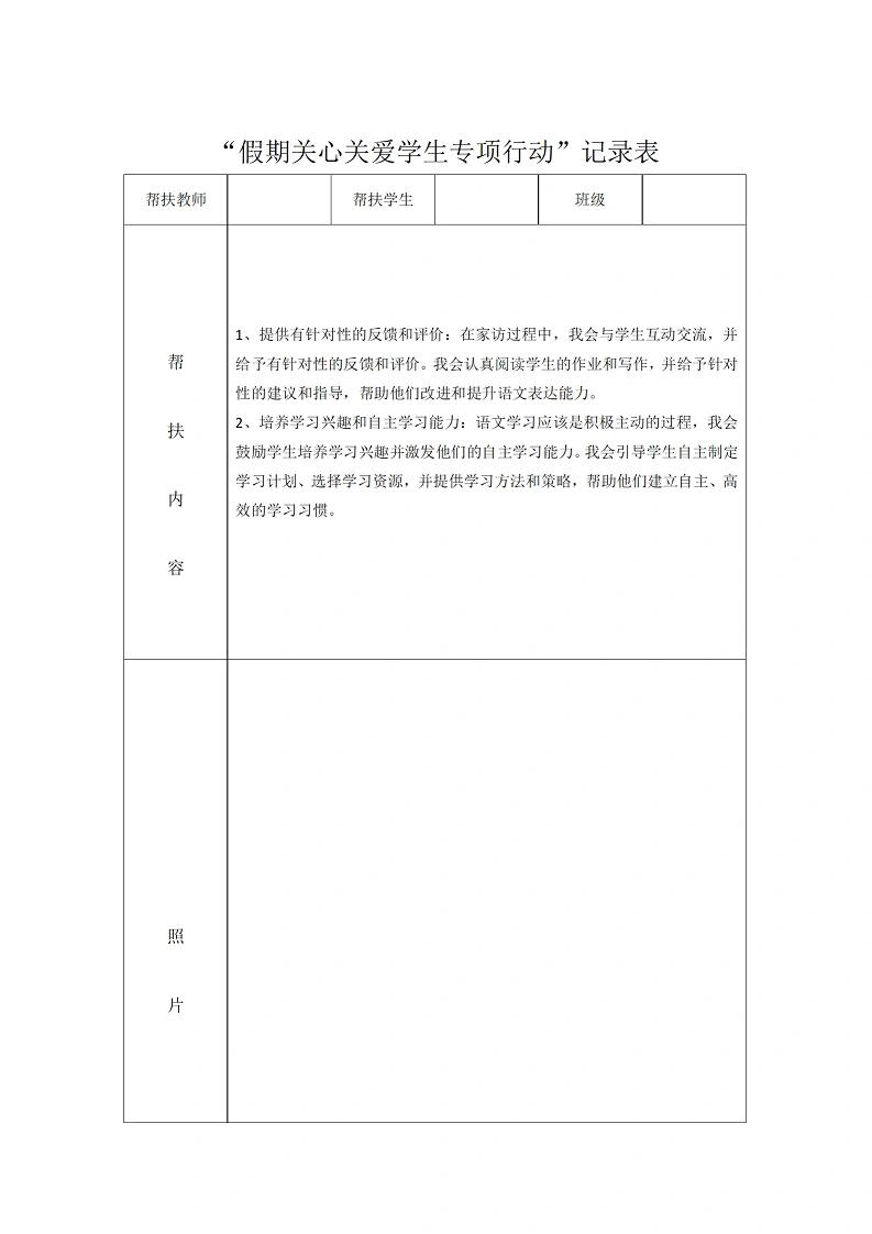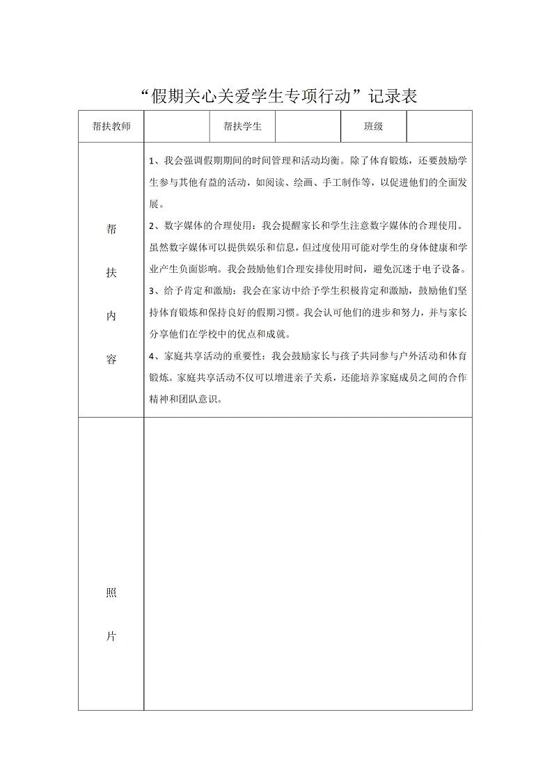 教师暑期学生家访记录表