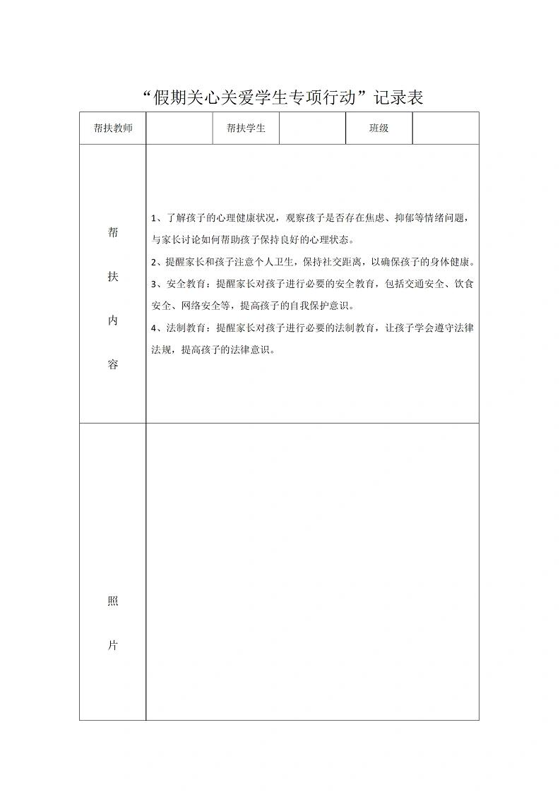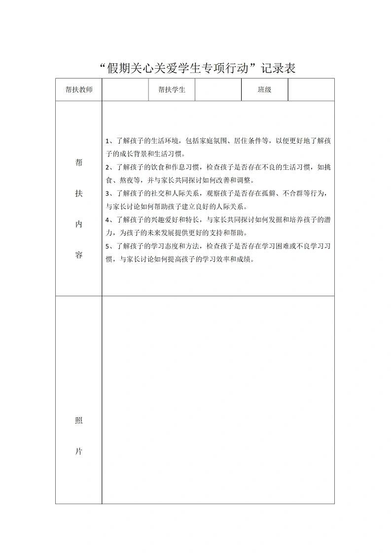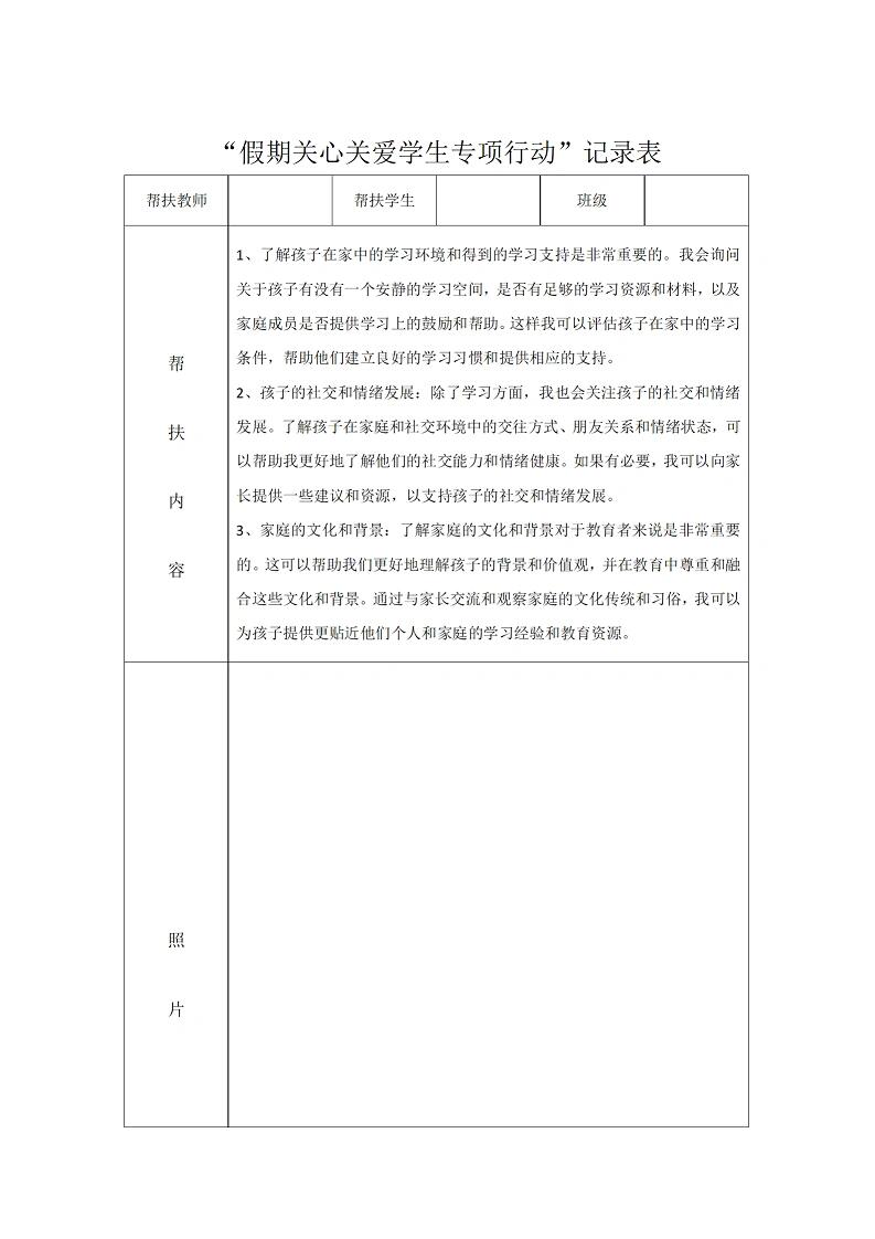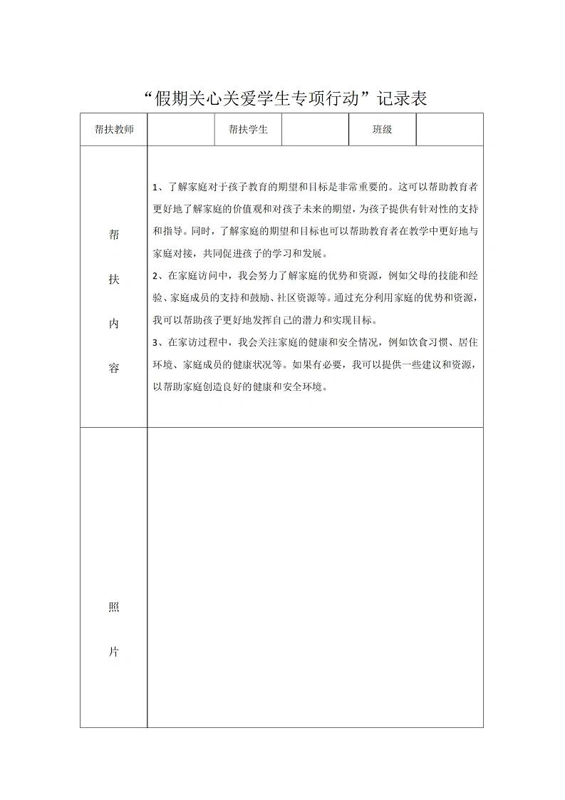 资源简介:教师暑期学生家访记录表