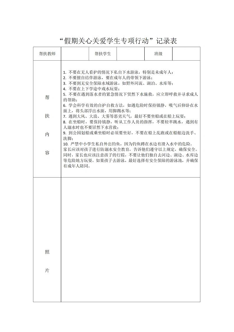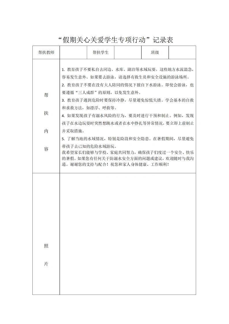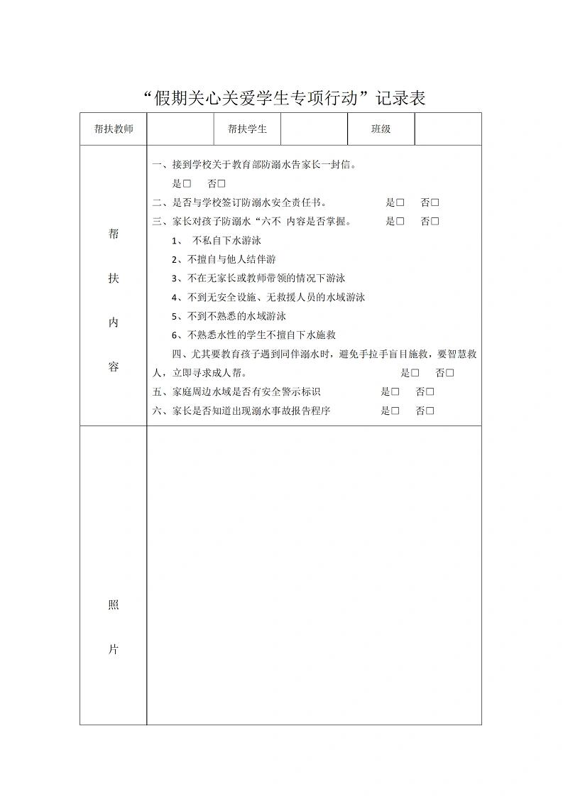 > 未知 教师暑期学生家访记录表