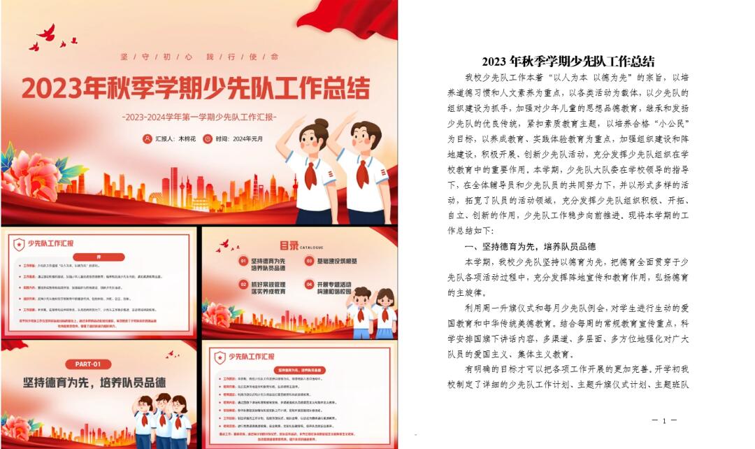 2023年少先队工作总结汇报含PPT加文稿