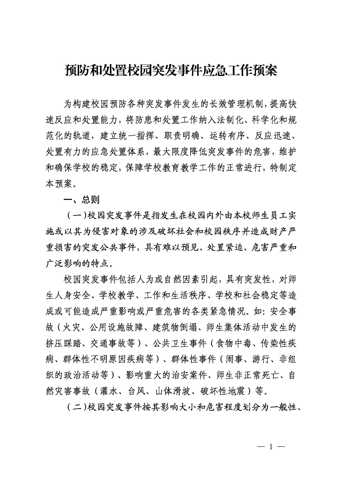 资源简介:学校安全应急处置预案 应急预案材料汇编