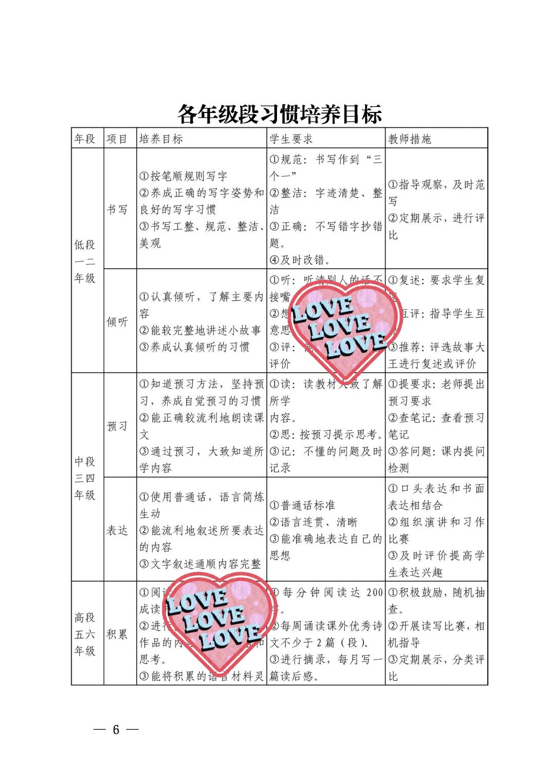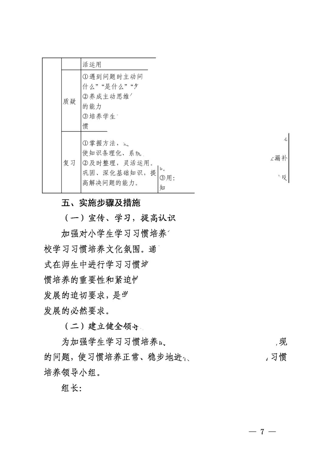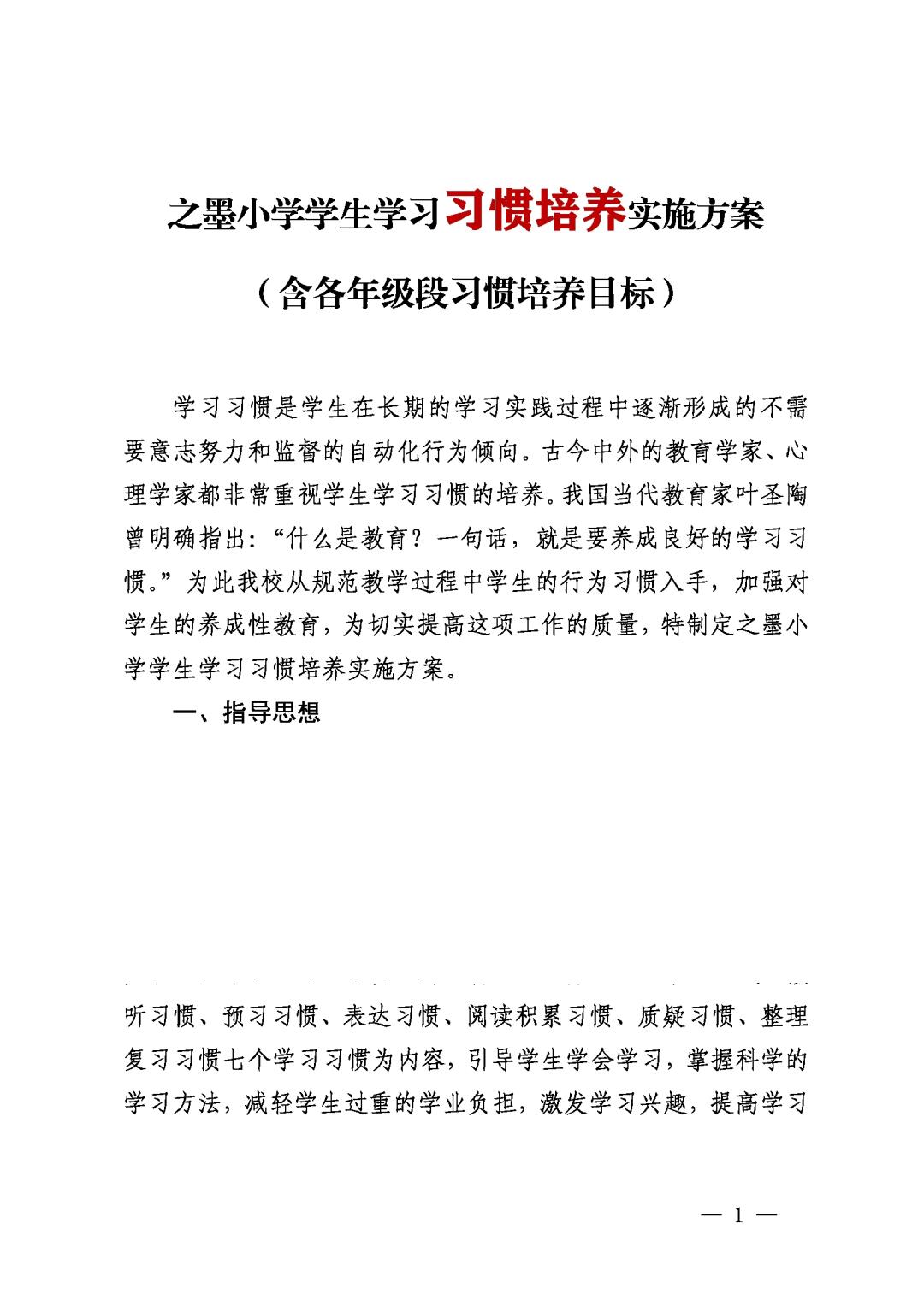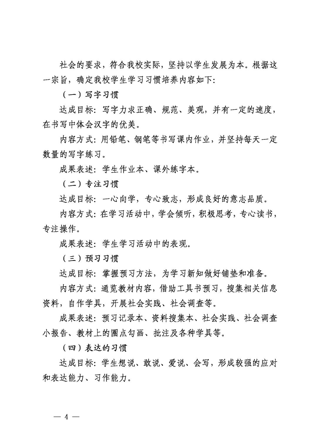 资源简介:学生学习习惯培养实施方案 含各年级段目标