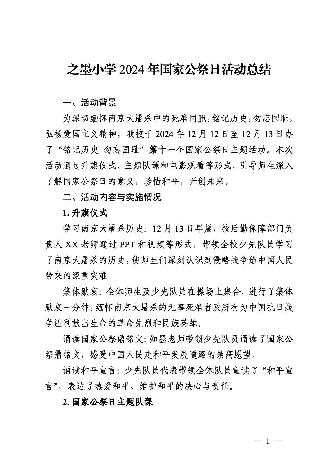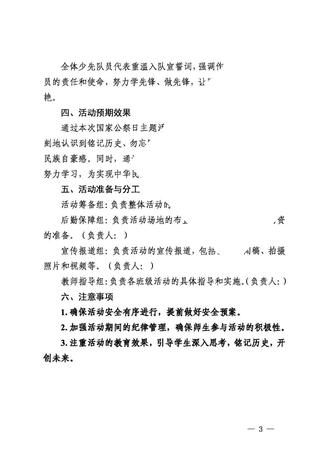 资源简介:2024年国家公祭日主题活动材料 含方案总结