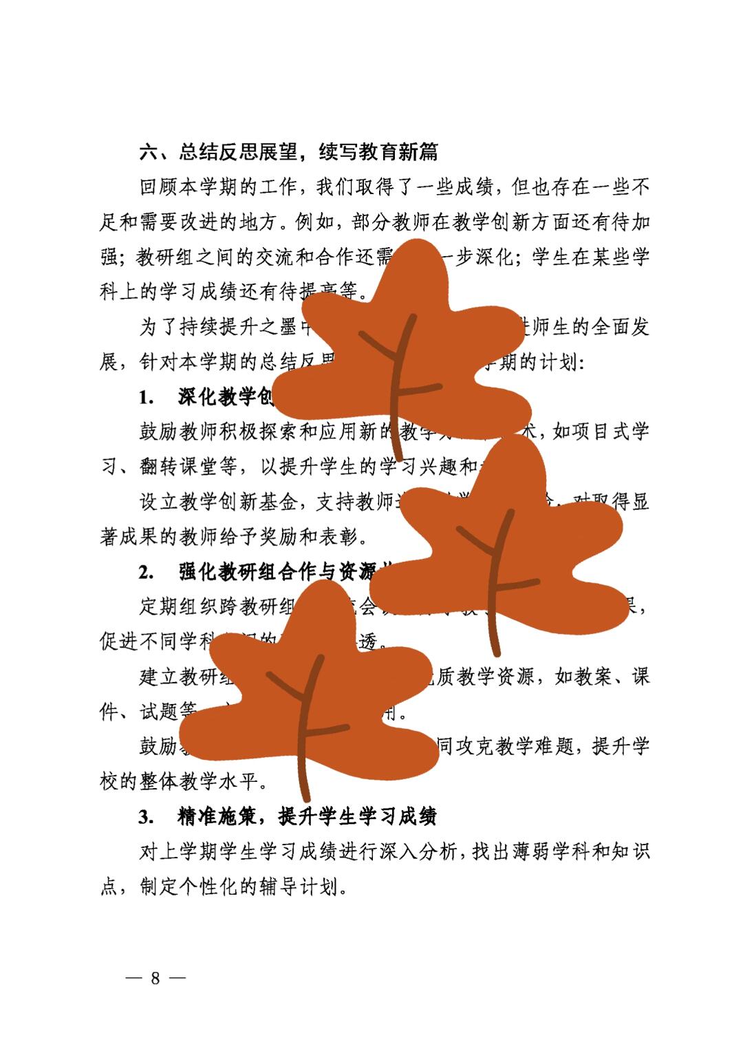 资源简介:中小学学校教研工作总结 妥妥的安排