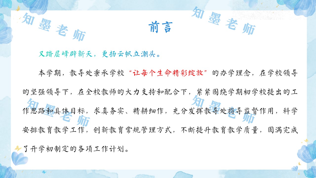 资源简介:含文稿+PPT103 2024-2025年上学期学校教导处工作总结(进取点点星铺路,步履稳踏自成功)