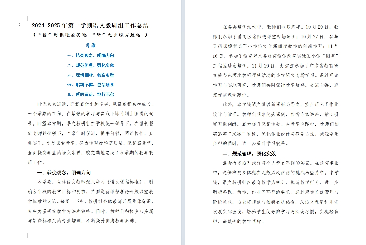 > 105 2024-2025年第一学期语文教研组工作总结(“语”时俱进履实地 “研”无止境方致远 )