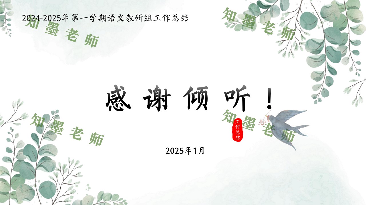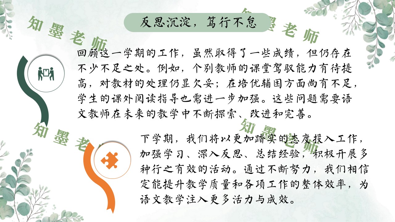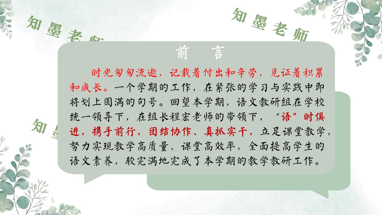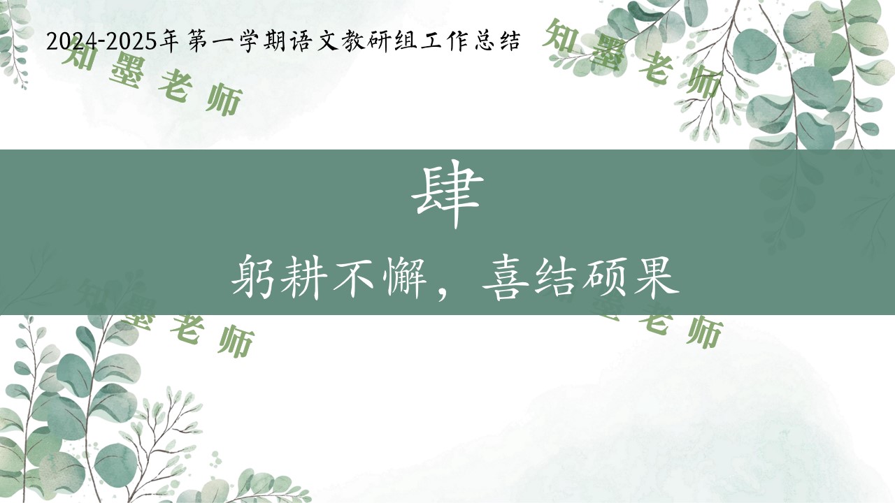 资源简介:含文稿+PPT105 2024-2025年第一学期语文教研组工作总结(“语”时俱进履实地 “研”无止境方致远 )