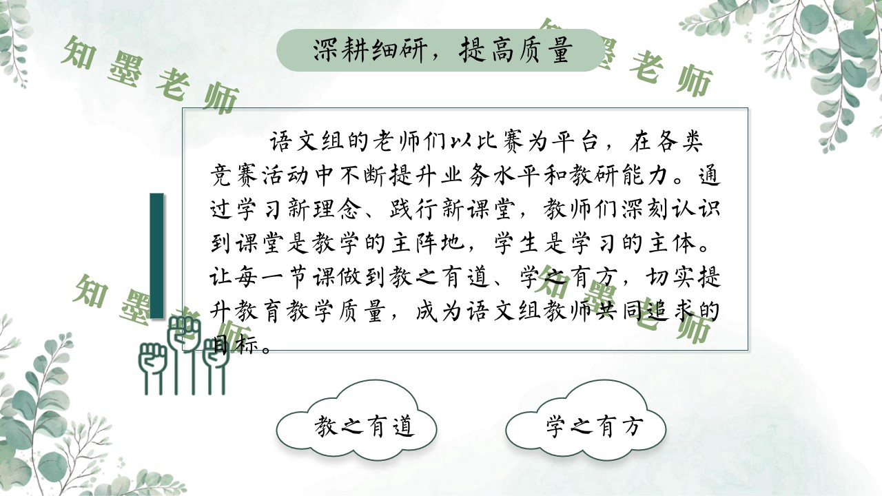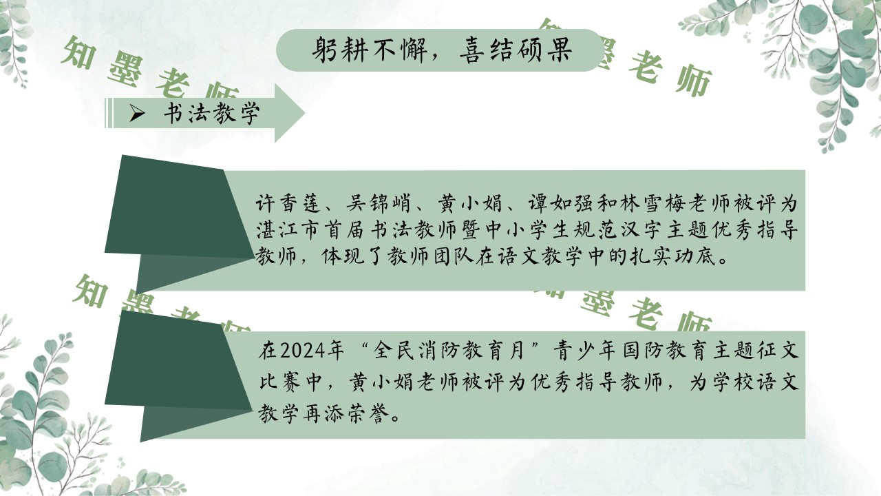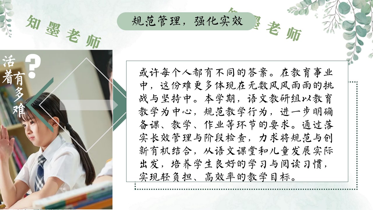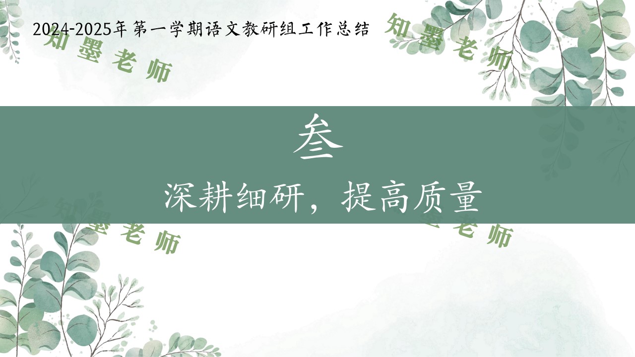 资源简介:含文稿+PPT105 2024-2025年第一学期语文教研组工作总结(“语”时俱进履实地 “研”无止境方致远 )
