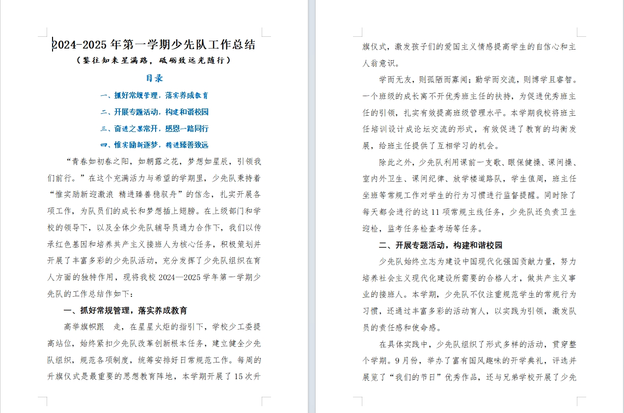 > 108 2024-2025年第一学期少先队工作总结(鉴往知来星满路,砥砺致远光随行)