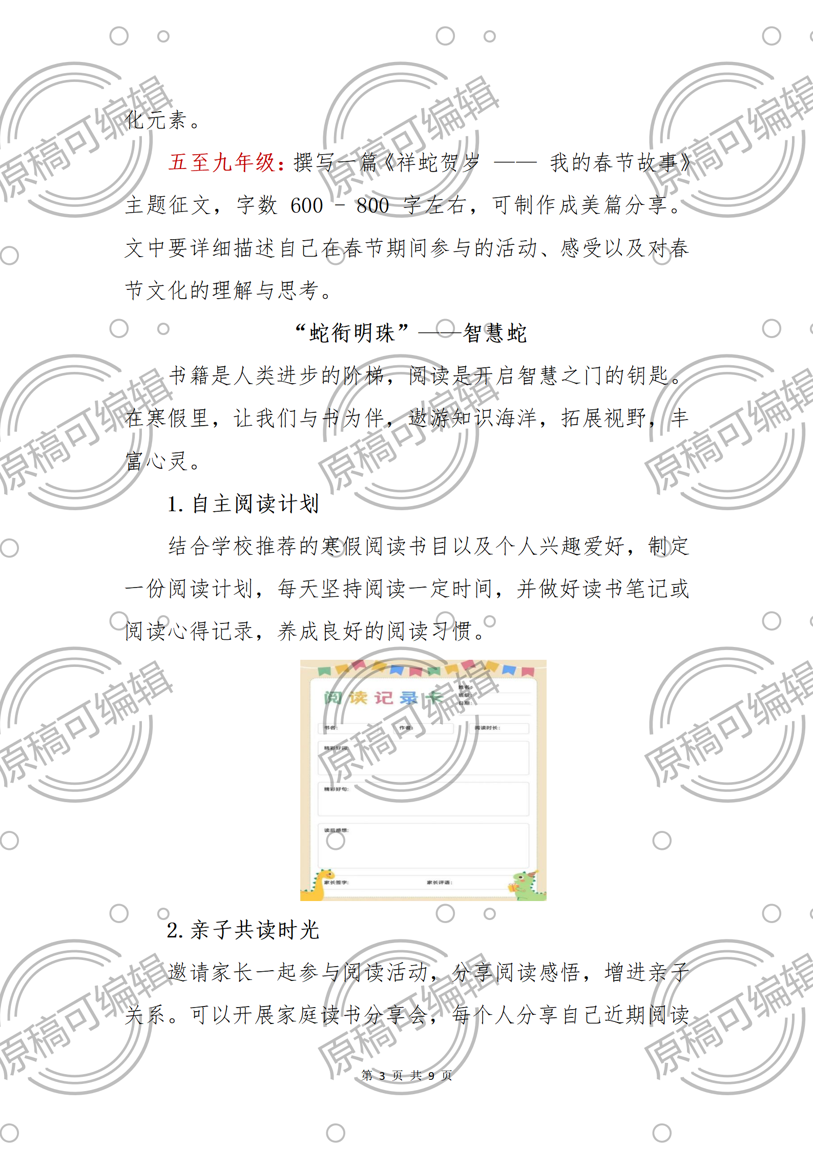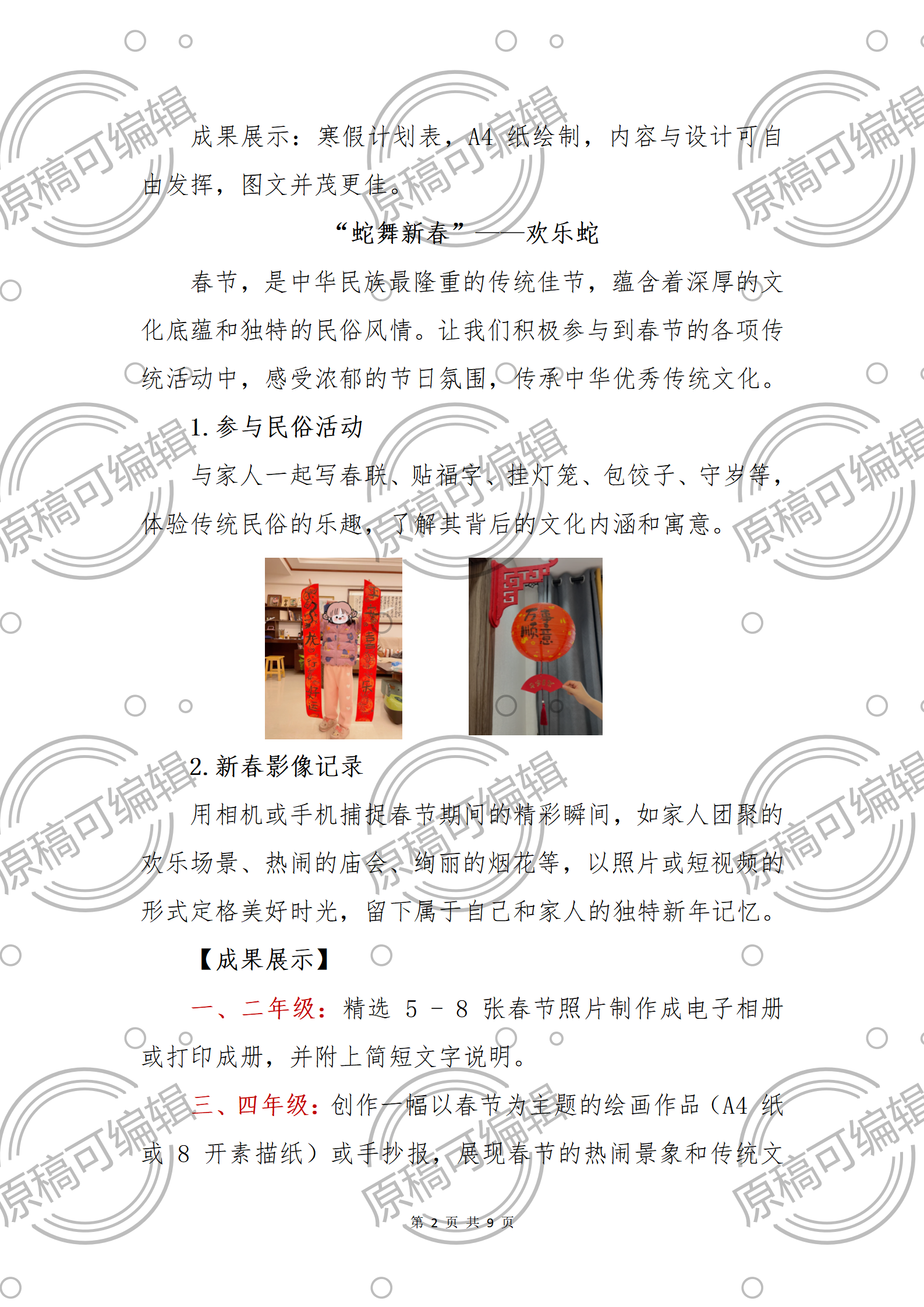 资源简介:含文稿+PPT22 祥蛇舞新春,寒假踏歌来 2025年蛇年寒假德育实践作业