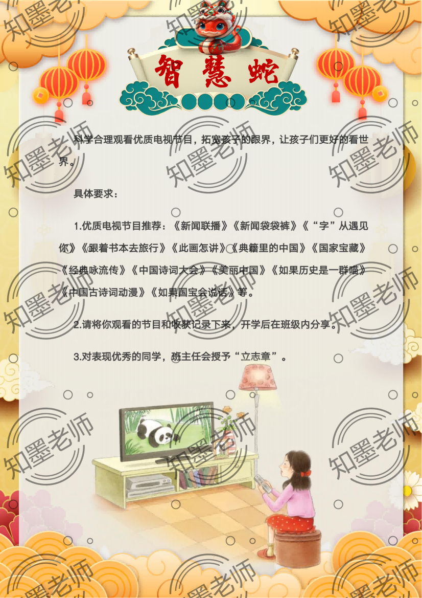 资源简介:含文稿+PPT20 灵蛇起航,智赢未来 2025年寒假特色实践作业