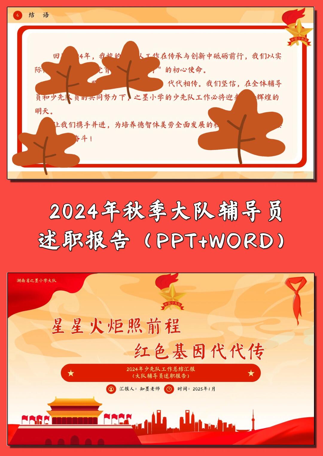 资源简介:2024年学校少先队辅导员述职报告PPT?文稿