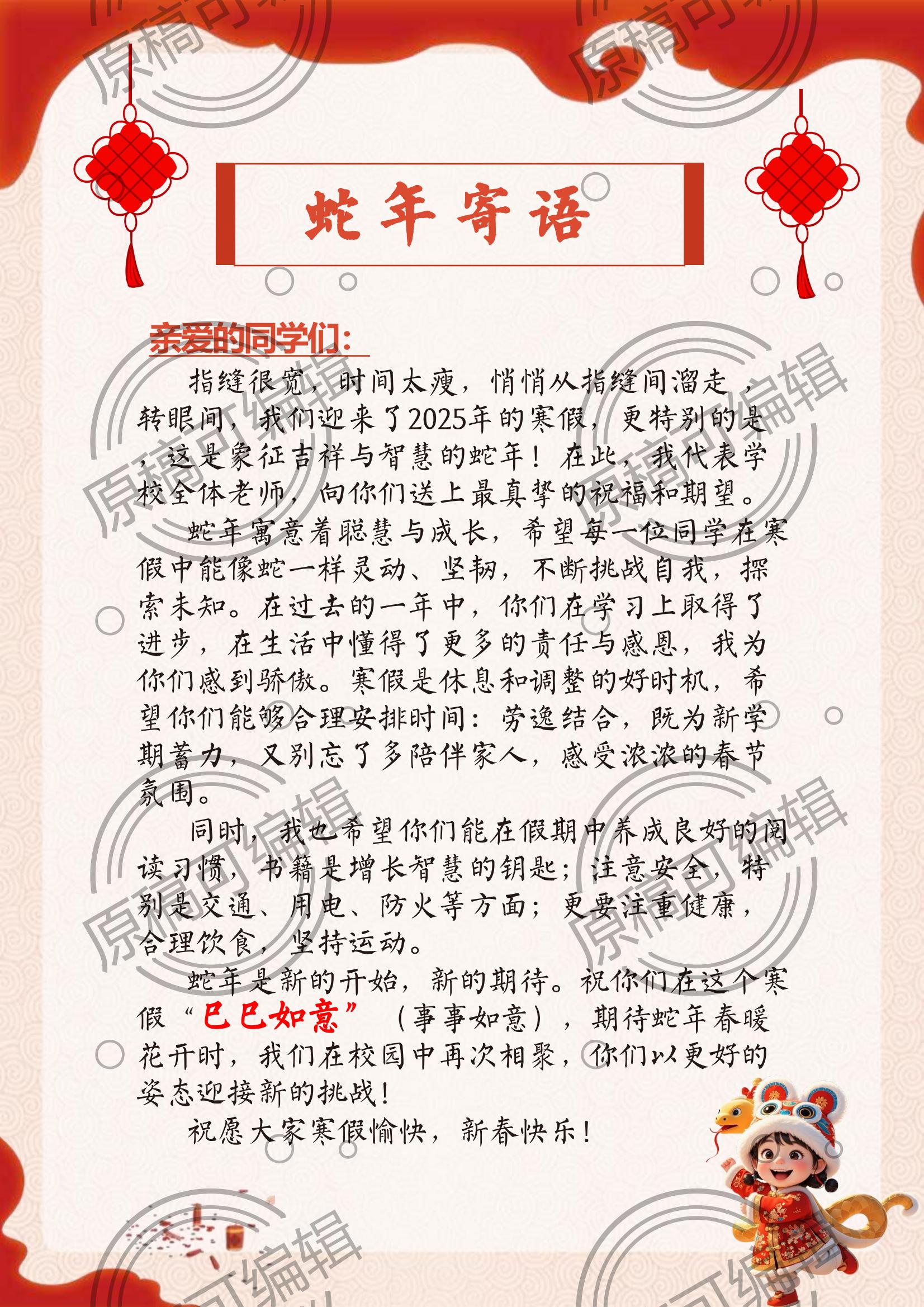 资源简介:含文稿+PPT巳巳如意 2025寒假特色作业单