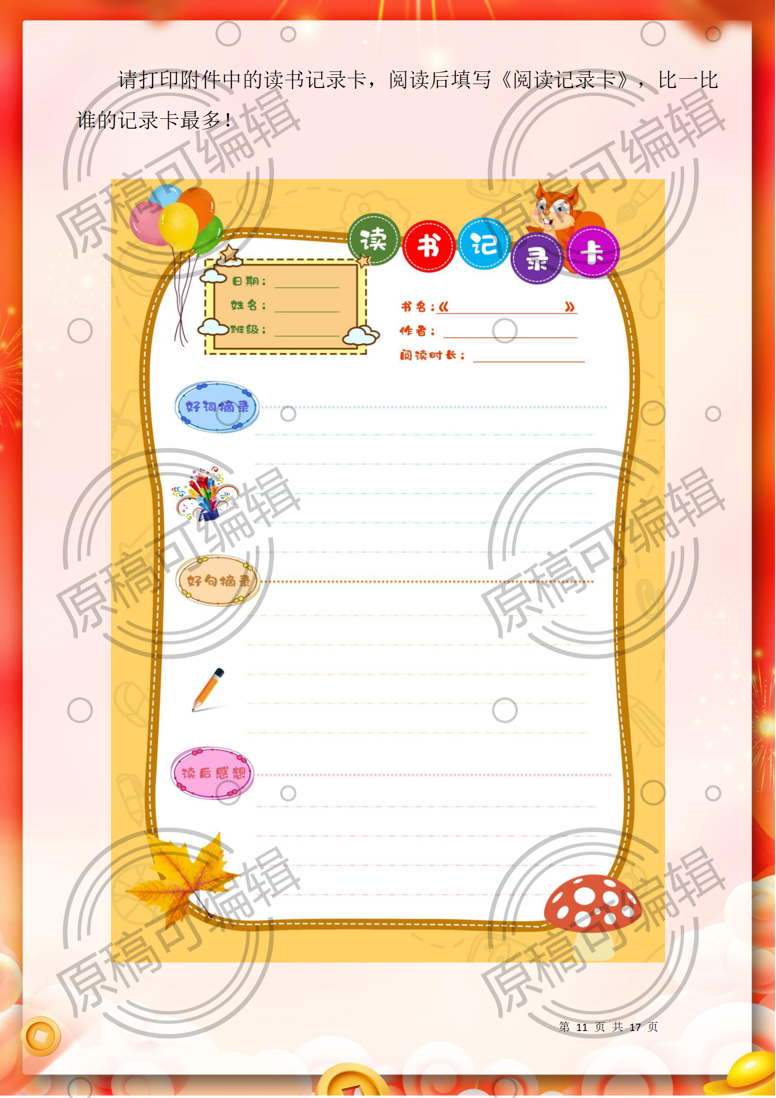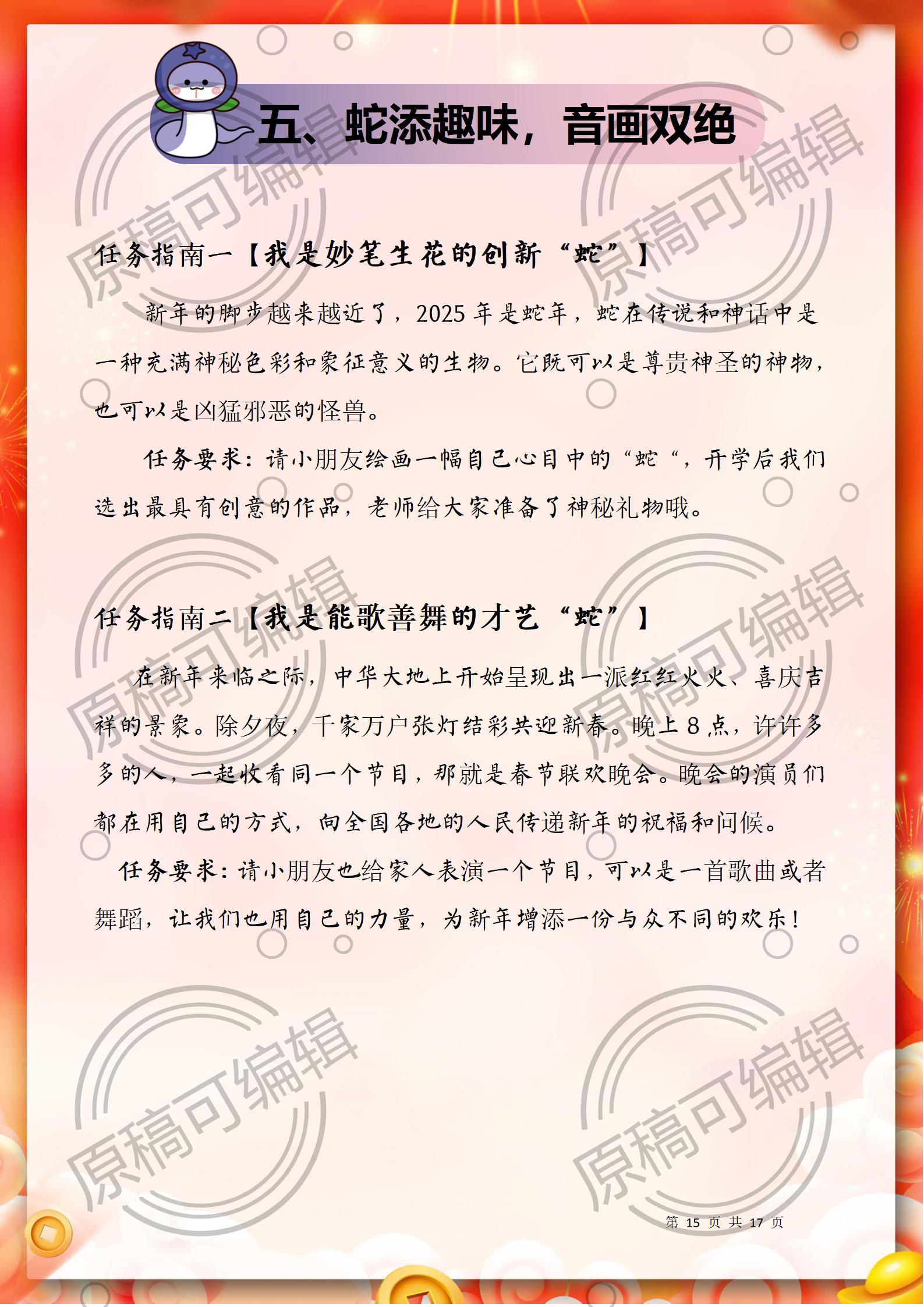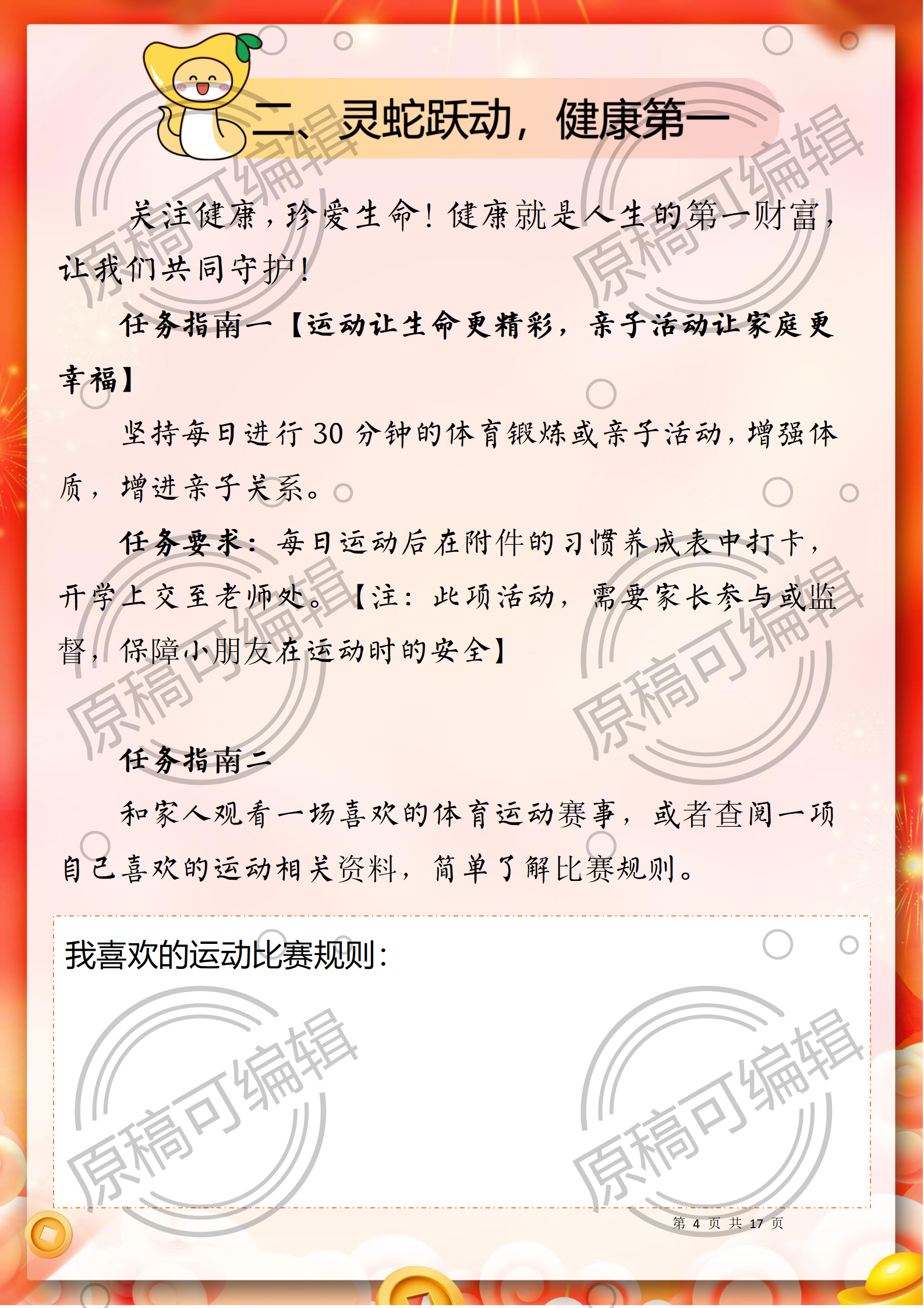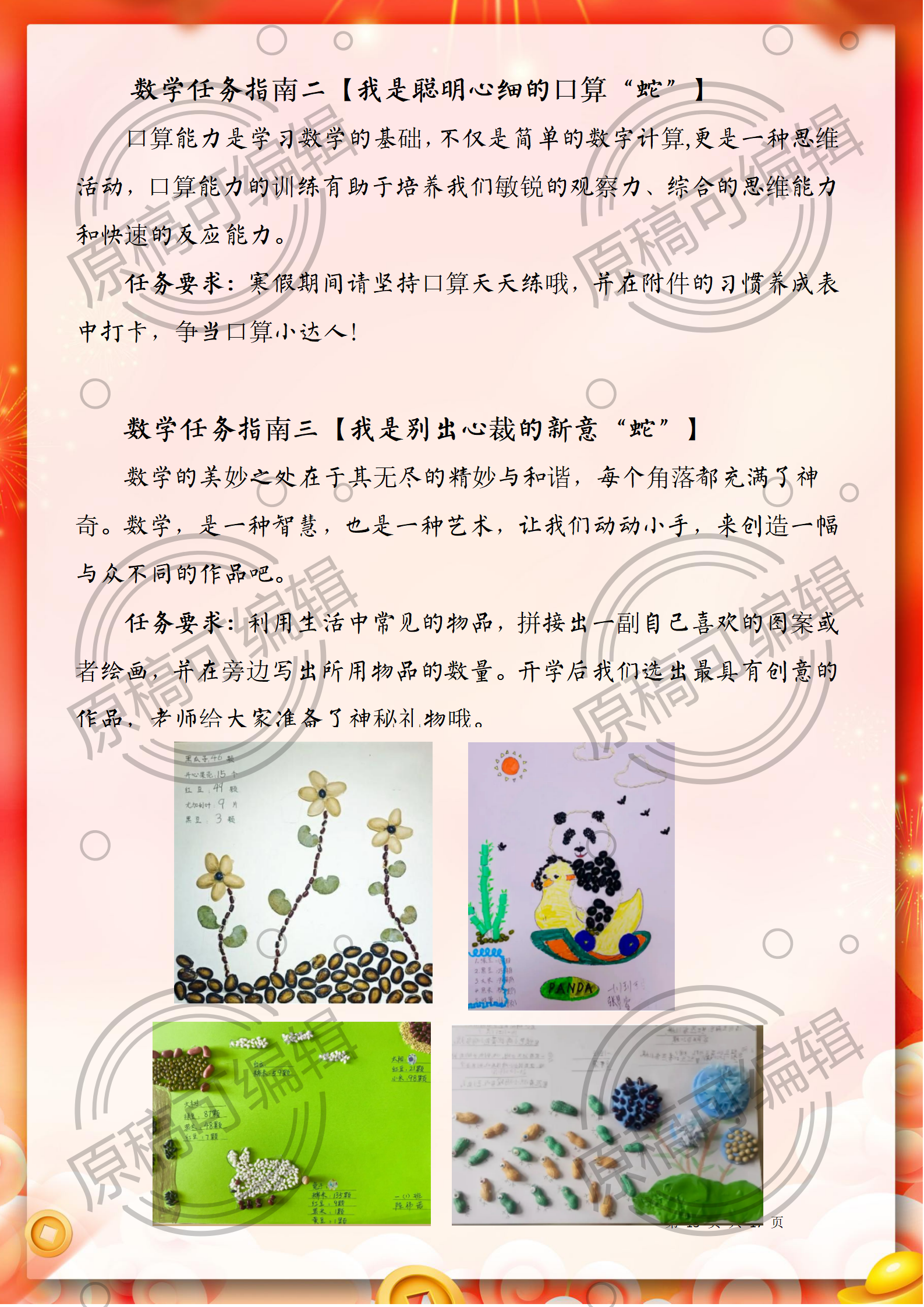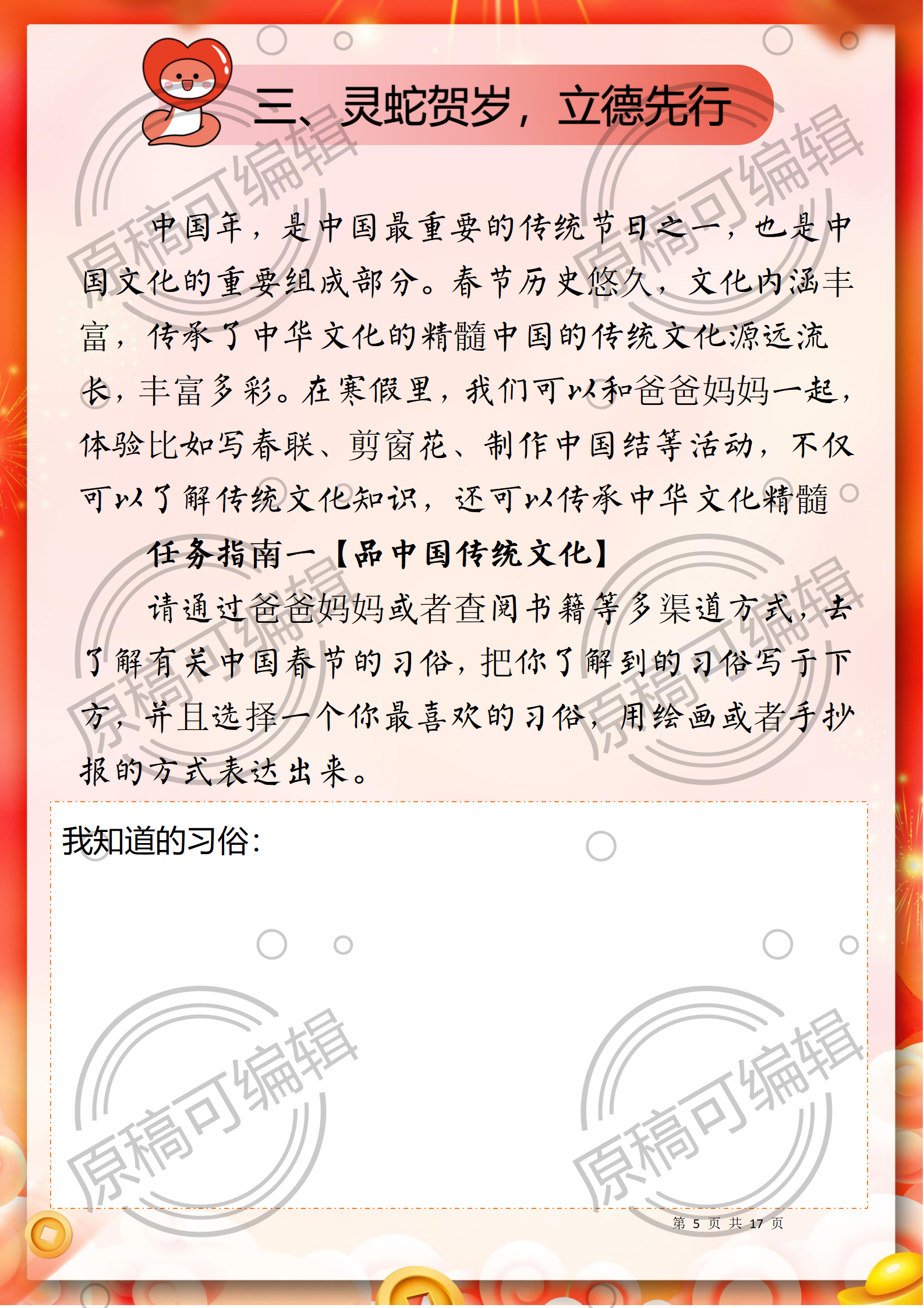 资源简介:含文稿+PPT26 2025年寒假一年级全学科寒假作业17页