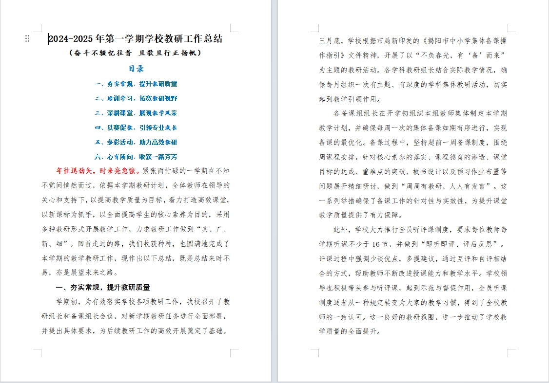 > 111 奋斗不辍忆往昔 且歌且行正扬帆 2024-2025年第一学期学校教研工作总结