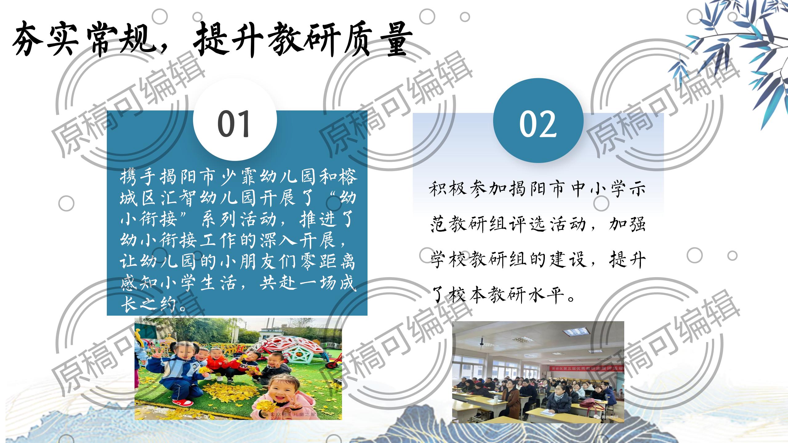 资源简介:含文稿+PPT111 奋斗不辍忆往昔 且歌且行正扬帆 2024-2025年第一学期学校教研工作总结