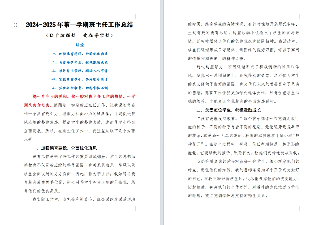 113 勤于细微处 爱在寻常处 2024-2025年第一学期班主任工作总结