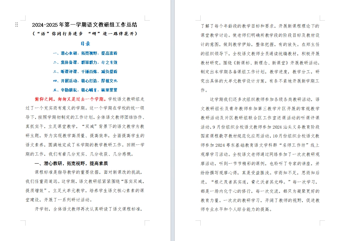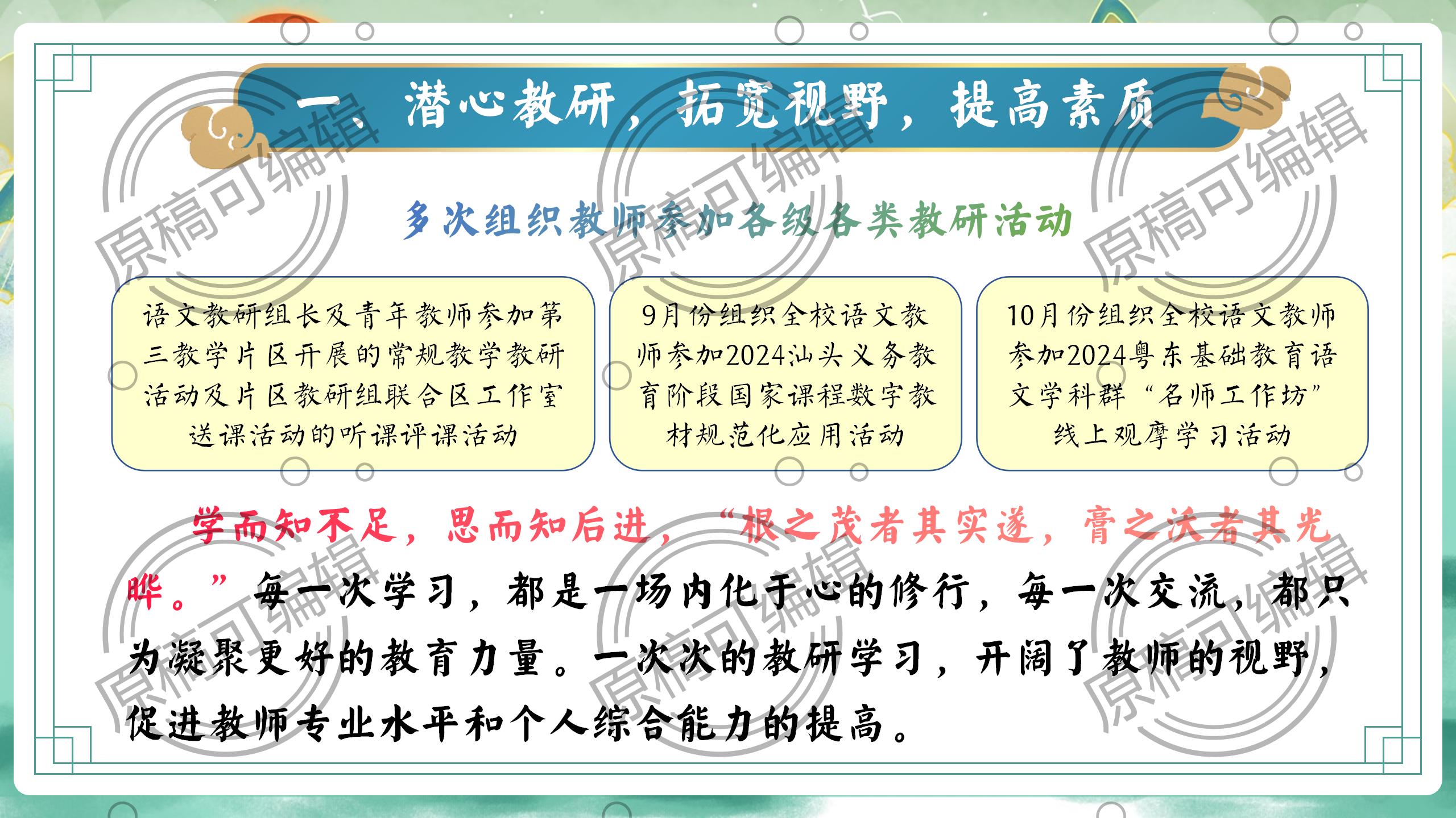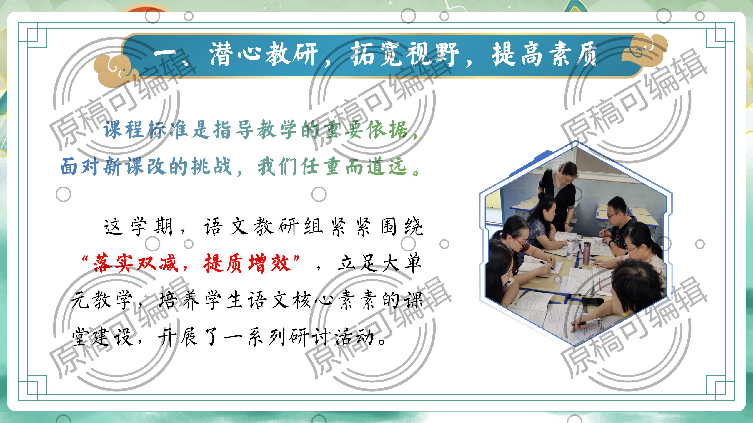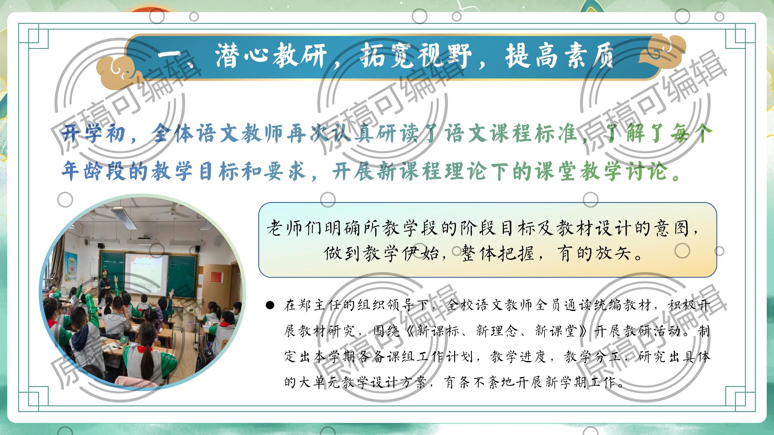 资源简介:含文稿+PPT118 “语”你同行齐进步 “研”途一路伴花开 2024-2025年第一学期语文教研组工作总结