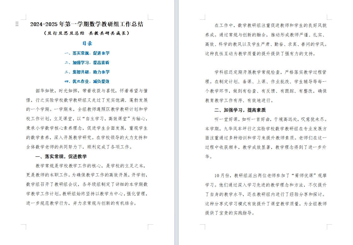 > 119 且行且思且总结 共教共研共成长 2024-2025年第一学期数学教研组工作总结