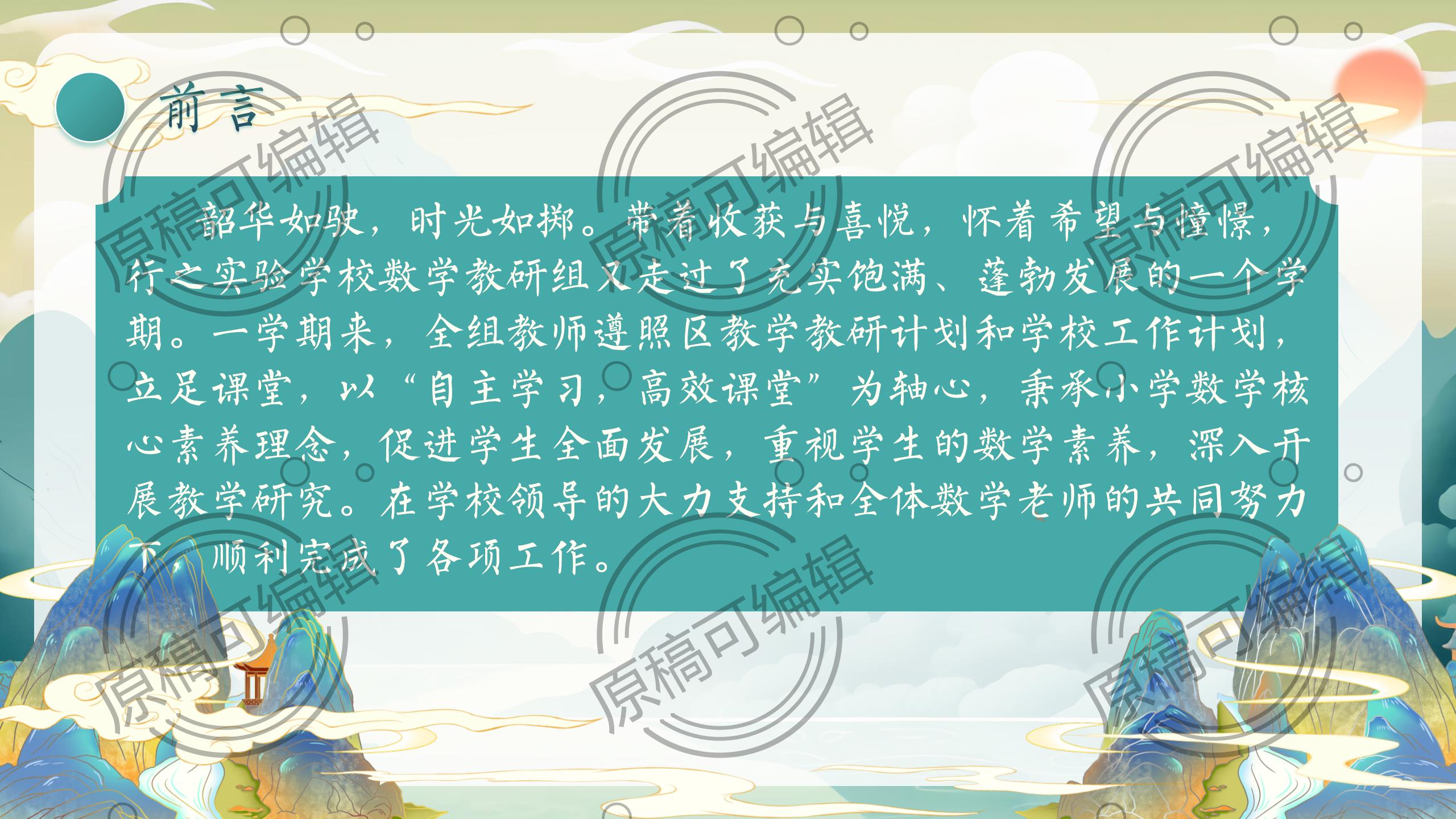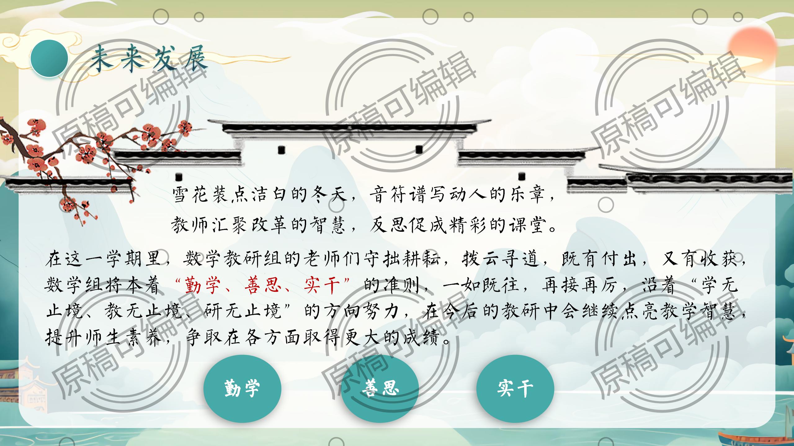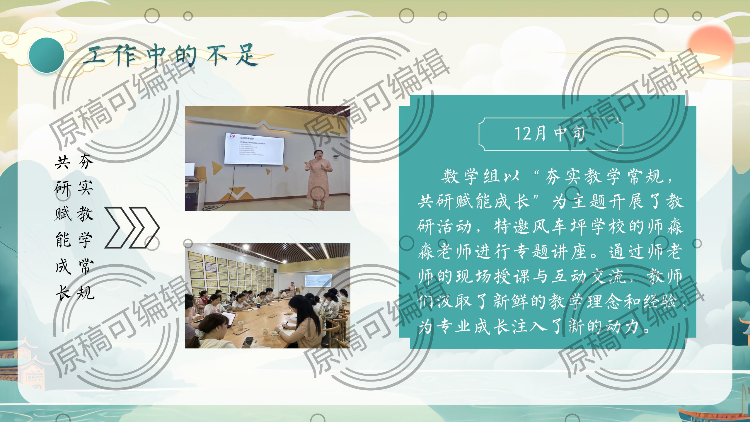资源简介:含文稿+PPT119 且行且思且总结 共教共研共成长 2024-2025年第一学期数学教研组工作总结