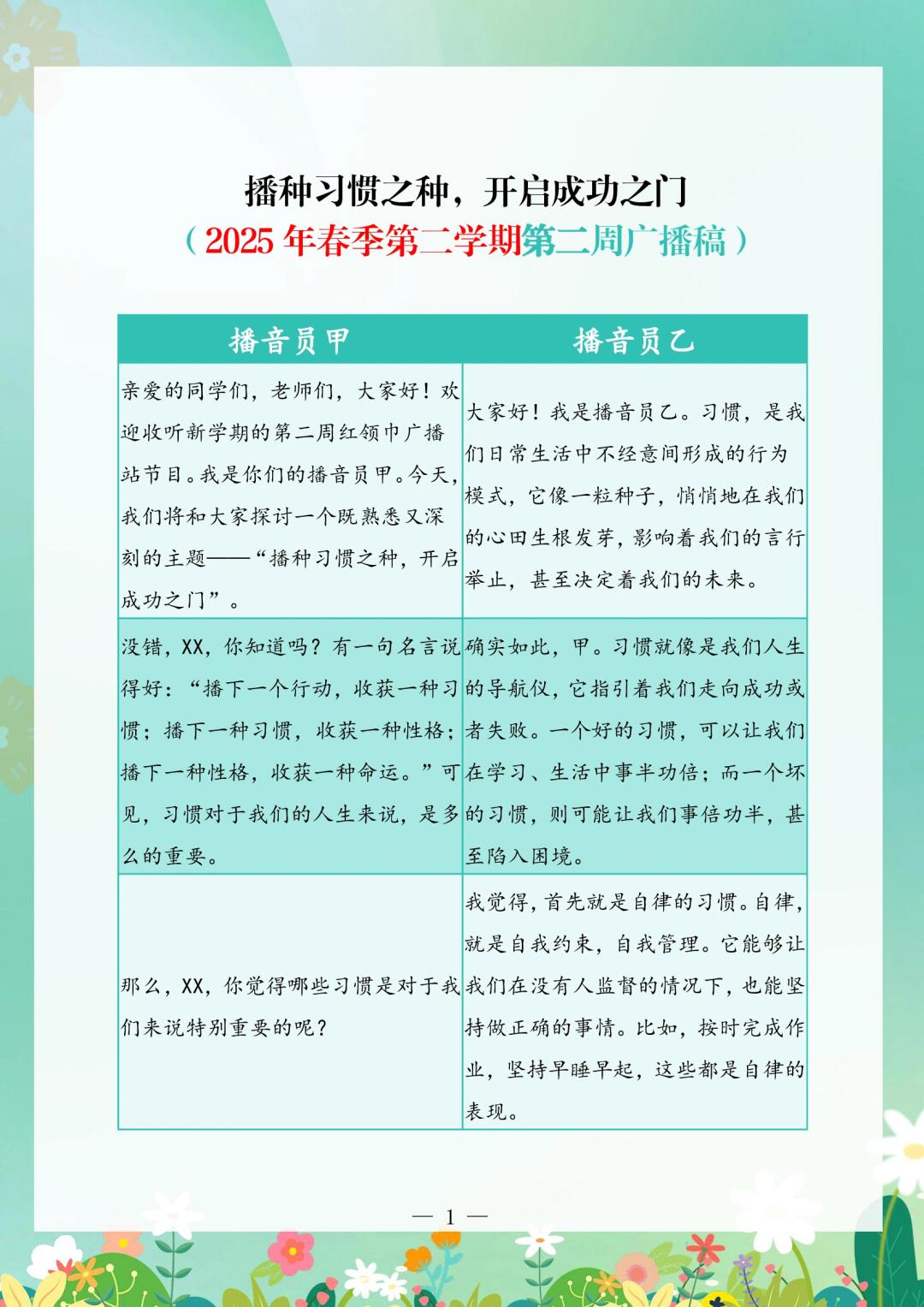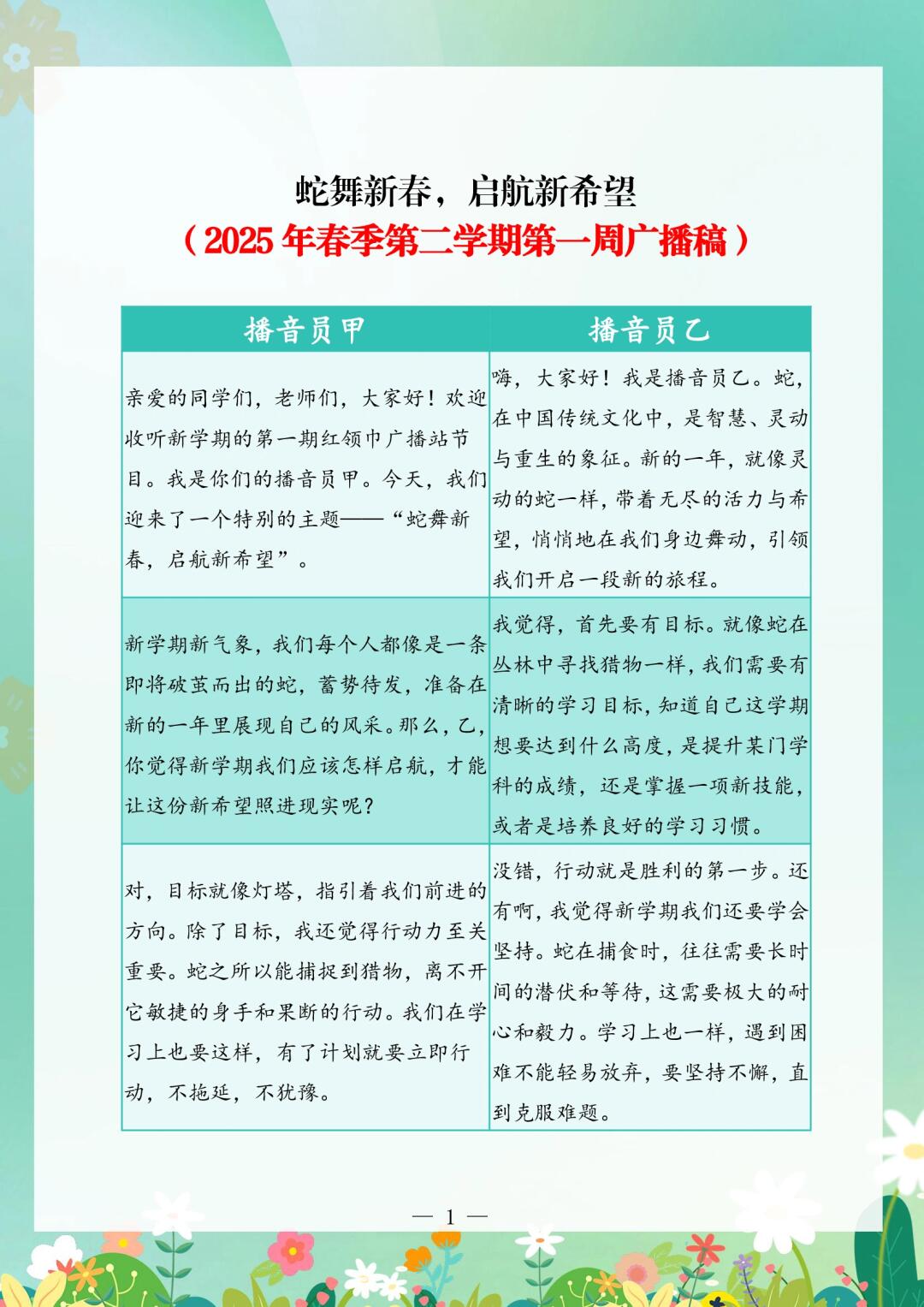 2025年春季广播站安排及配套广播稿 2025年春季广播稿