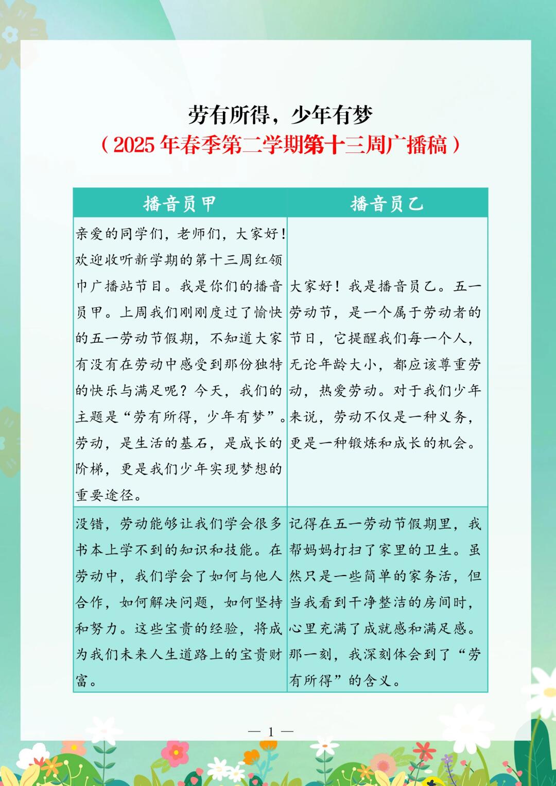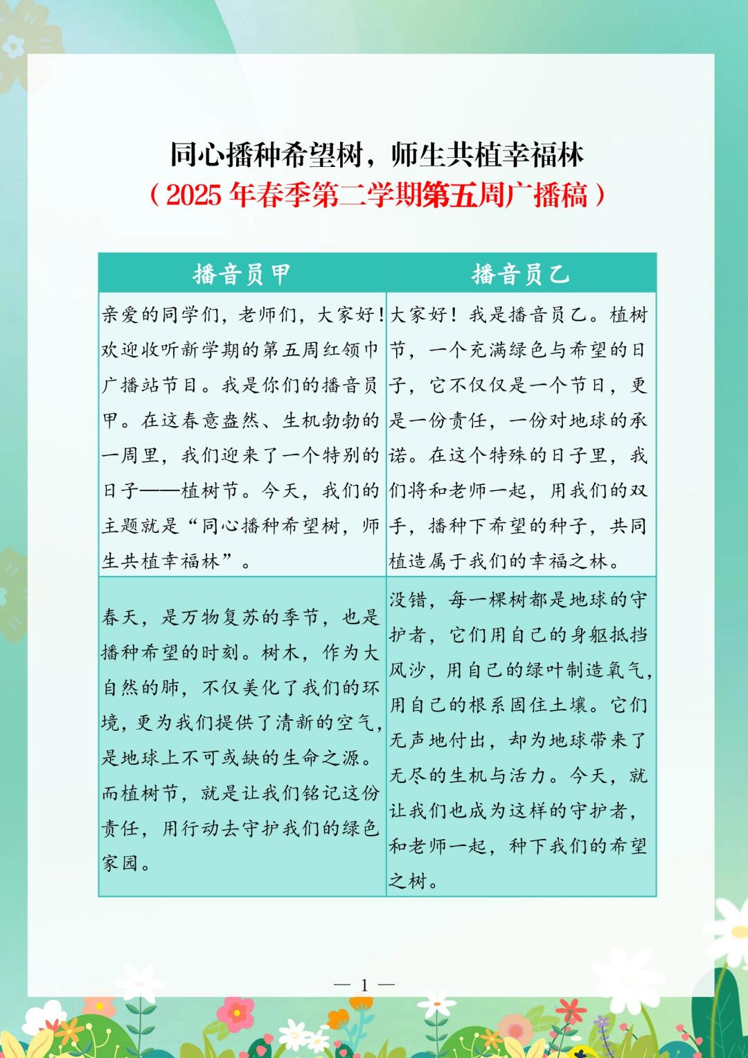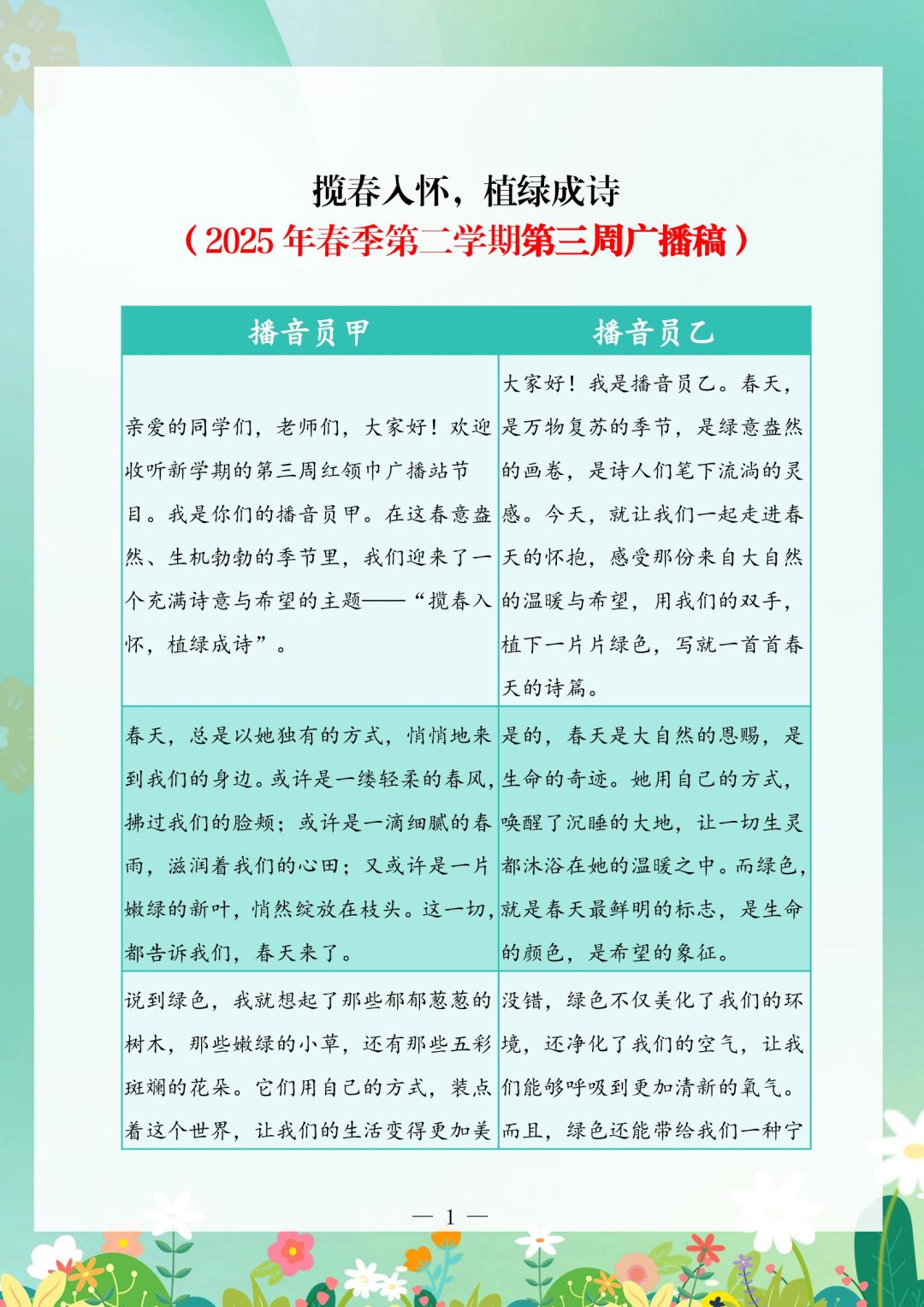 > 2025年春季广播站安排及配套广播稿 2025年春季广播稿