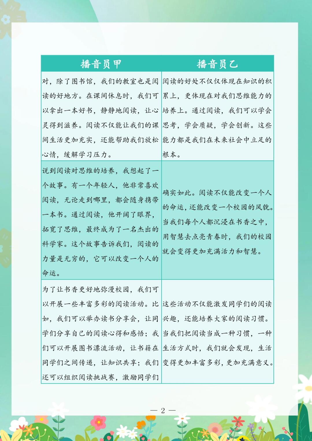 资源简介:下面就跟着这套广播稿进入如诗如画的校园吧