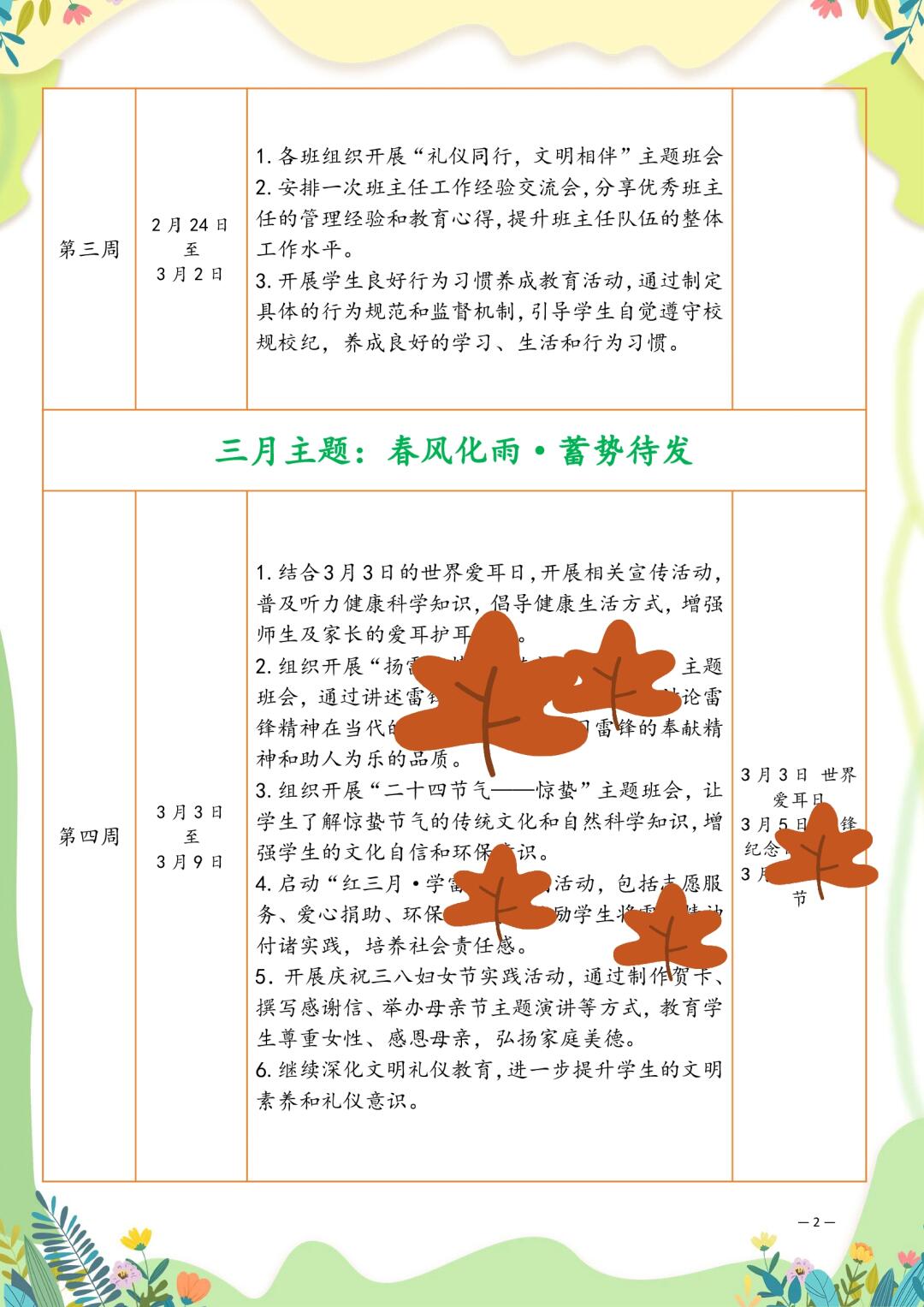2025年春季德育行事历 德育工作安排表|上一任德育副校长的升职秘籍全在这张表里