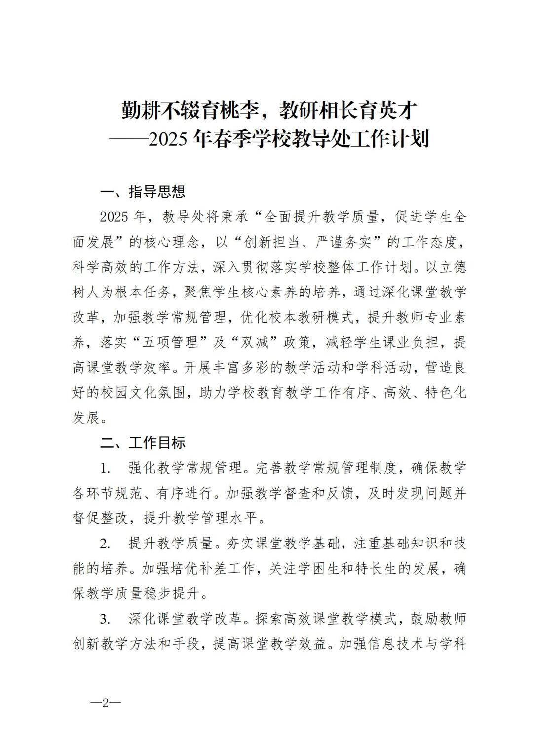 资源简介:2025年春季教导处工作计划及安排表好哇塞