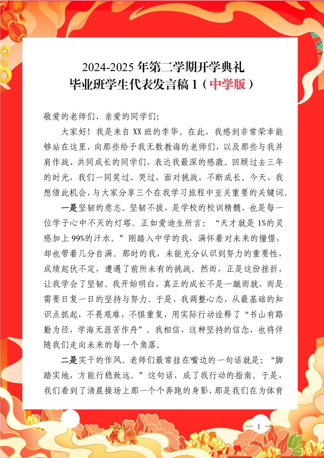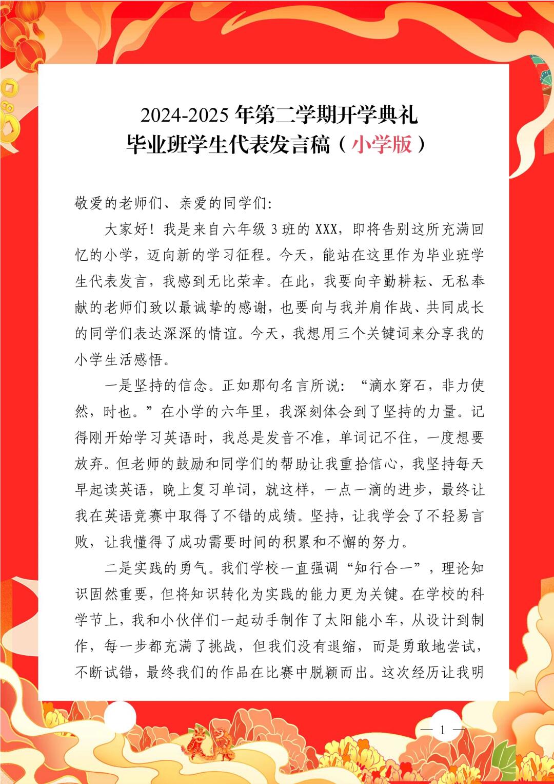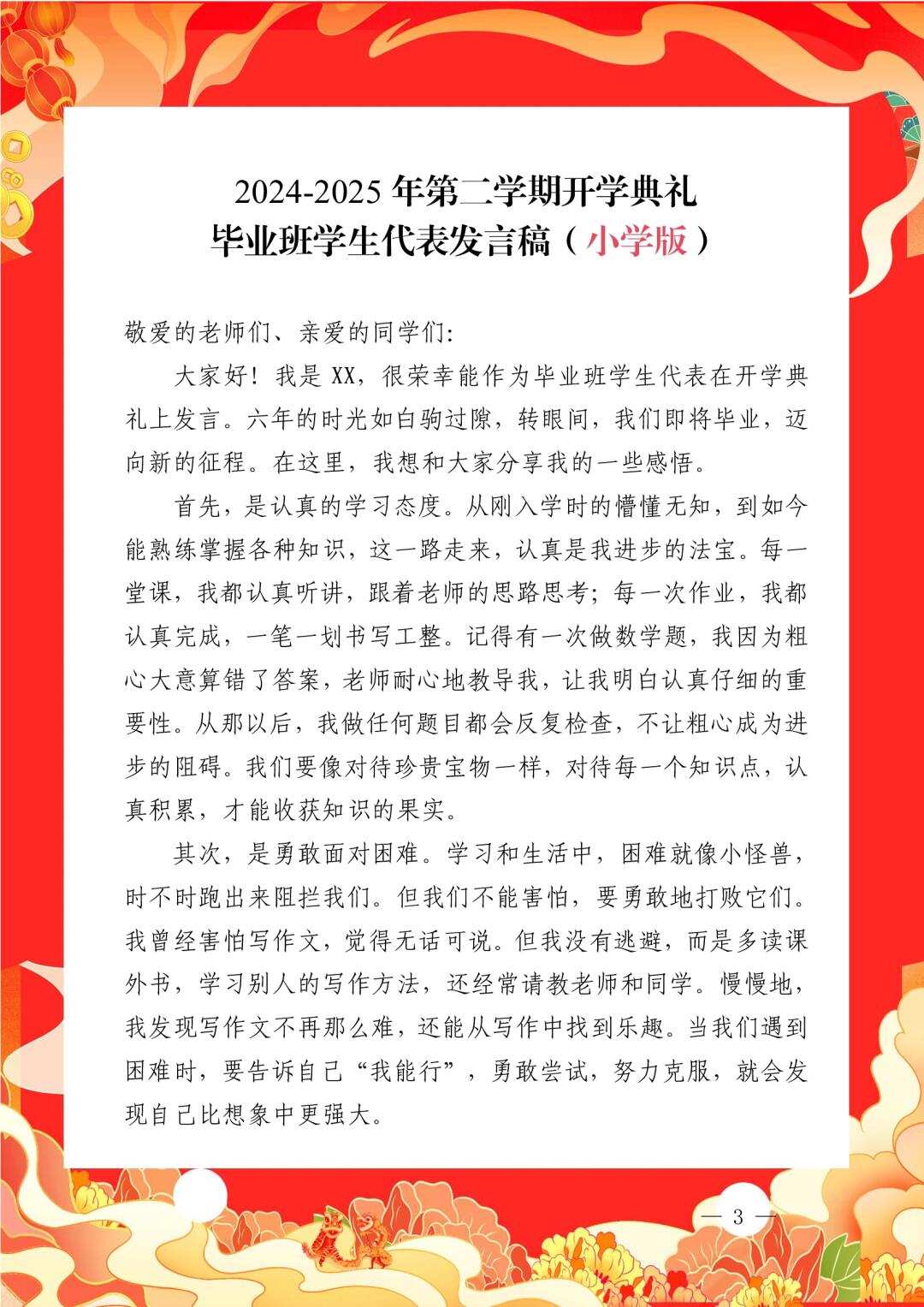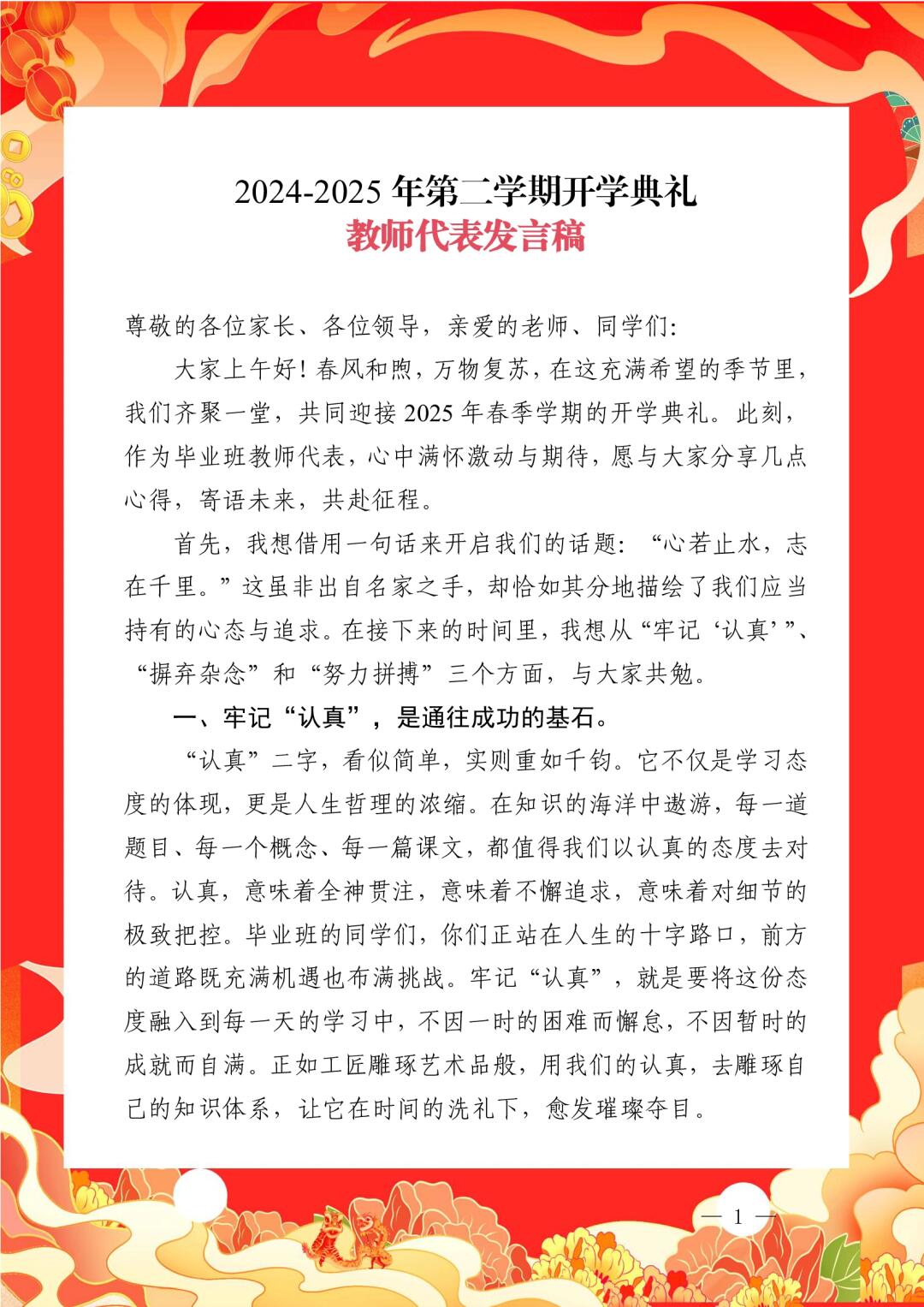 > 祥蛇献瑞启新程,砥砺奋进正当时 2024-2025学年第二学期开学典礼全套