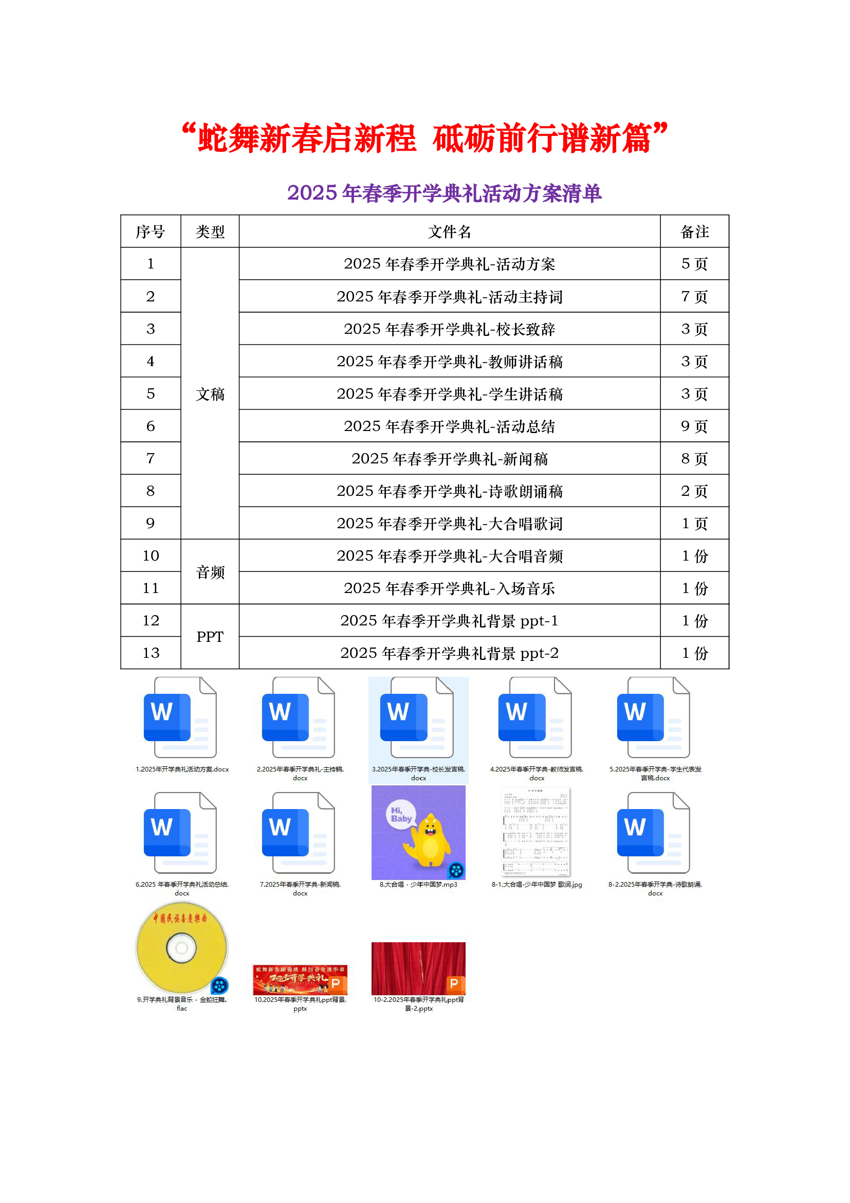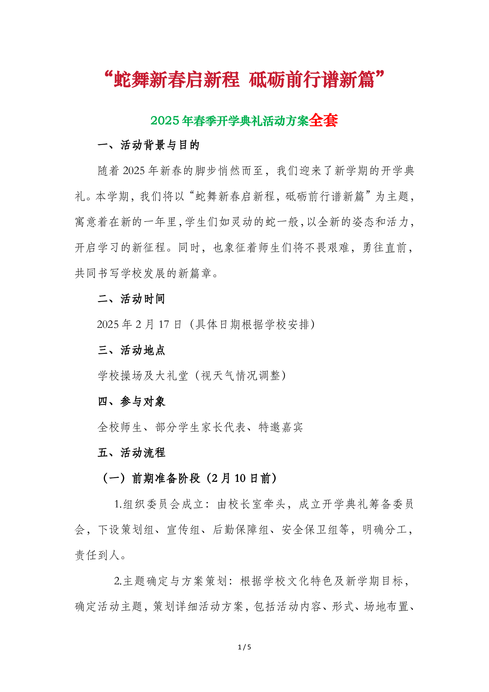 > 2025年春季开学典礼活动方案全套(蛇舞新春启新程 砥砺前行谱新篇)