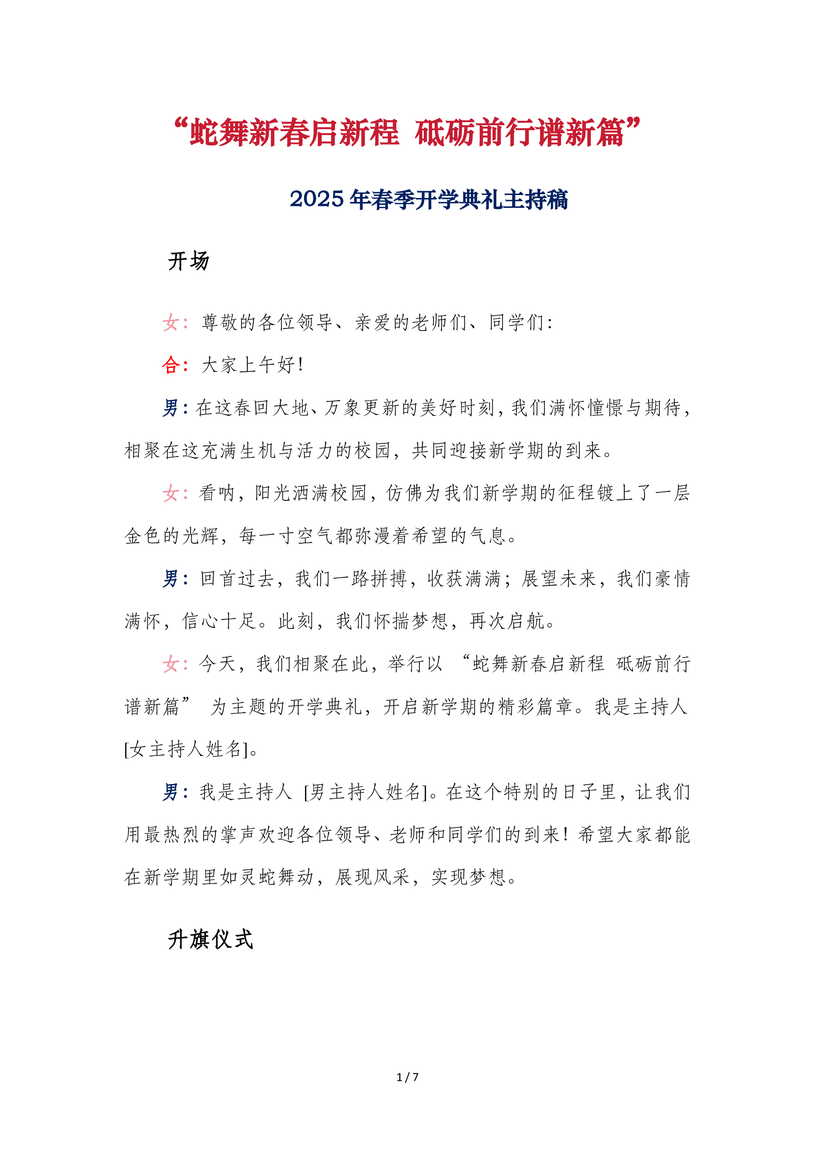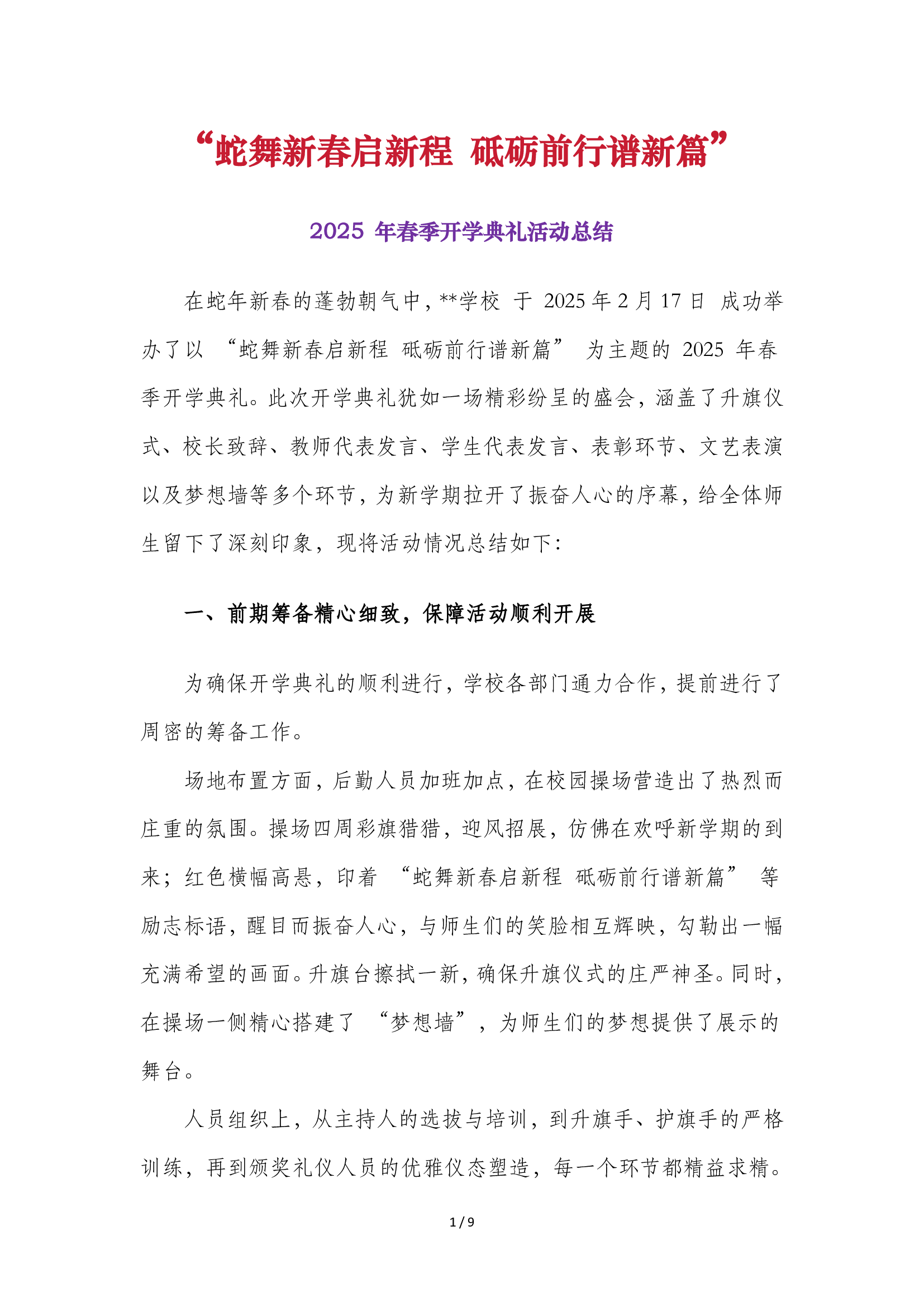 2025年春季开学典礼活动方案全套(蛇舞新春启新程 砥砺前行谱新篇)