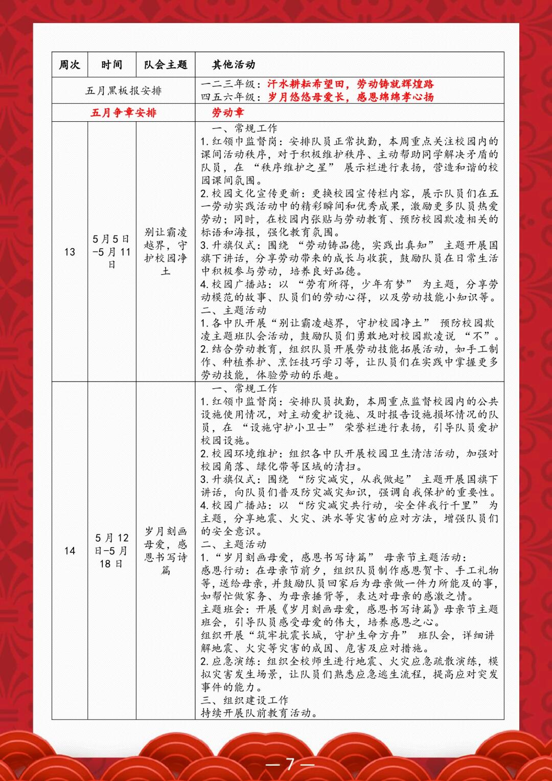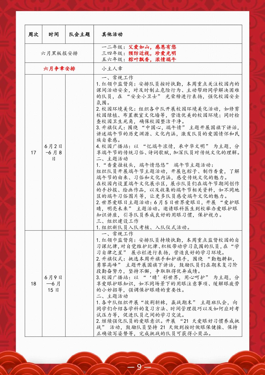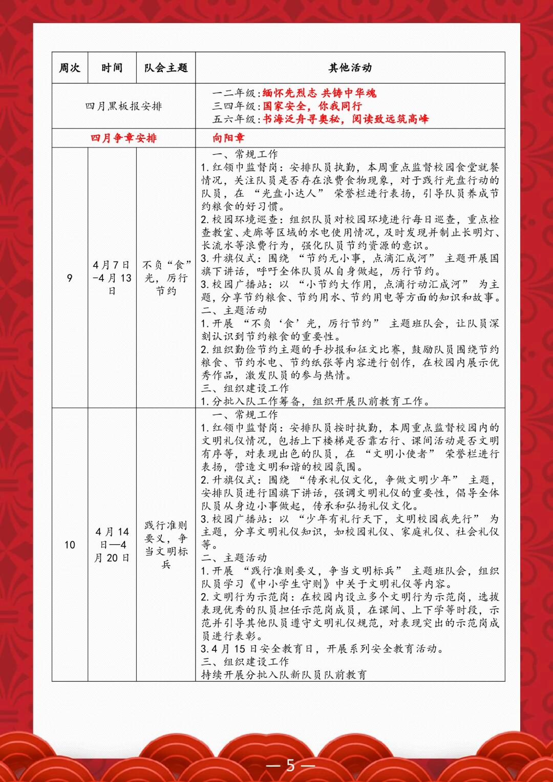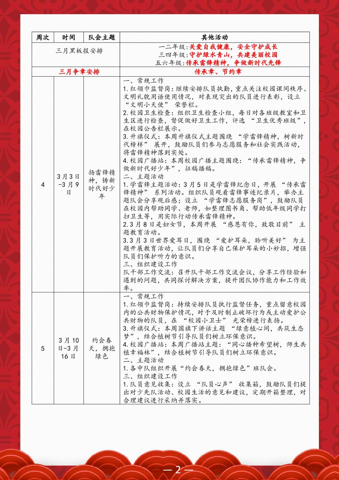 > 仅此一份——252025年春季少先队工作安排表(少先队行事历)