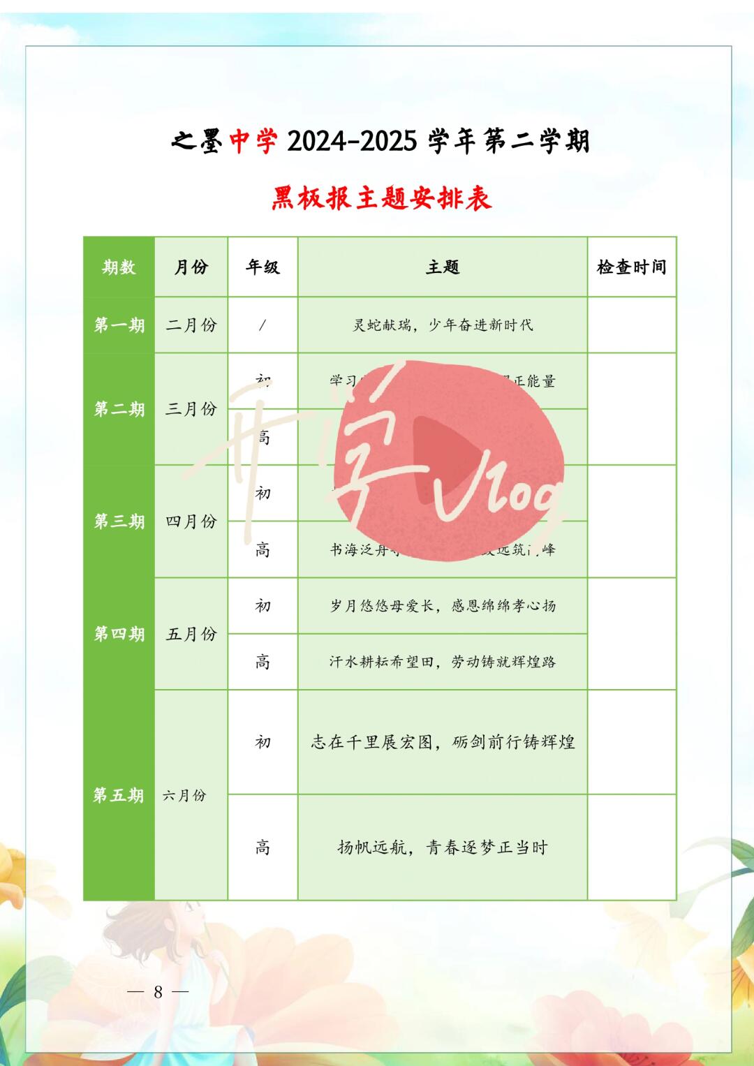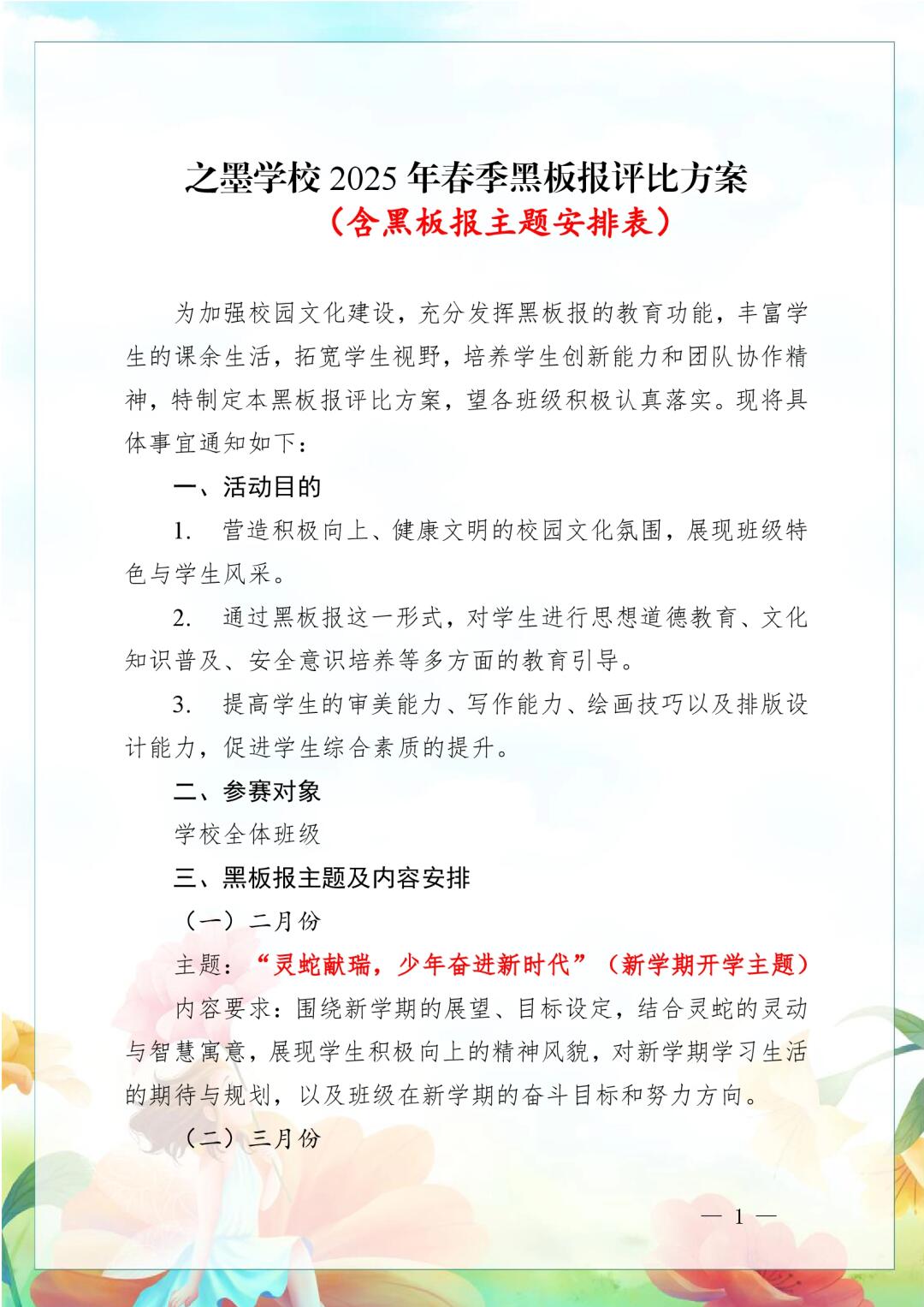 > 2025年春季黑板报主题安排 含详细评比方案