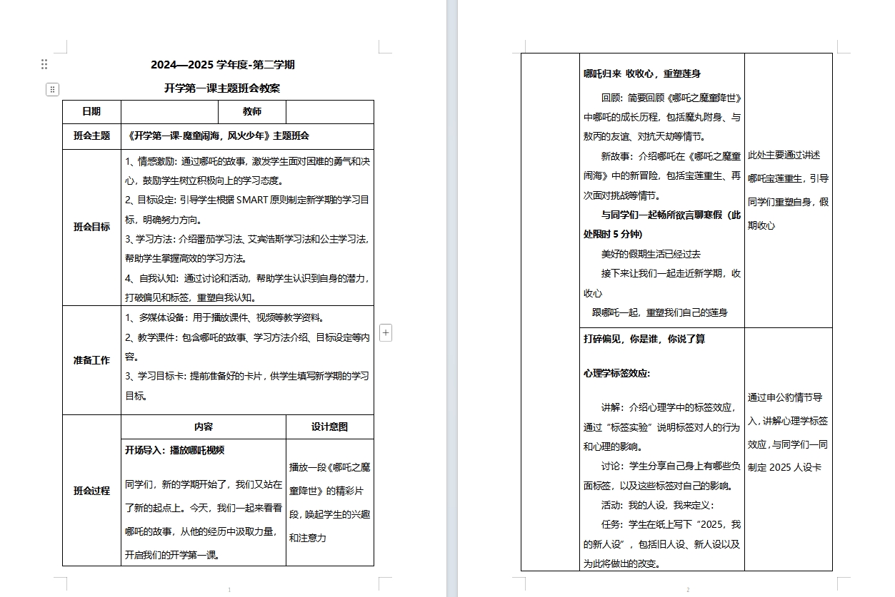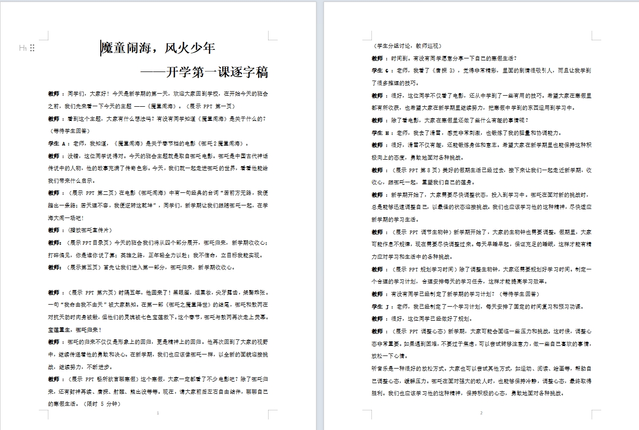 > 31.2025年 开学第一课《魔童闹海,风火少年 》含教案 逐字稿