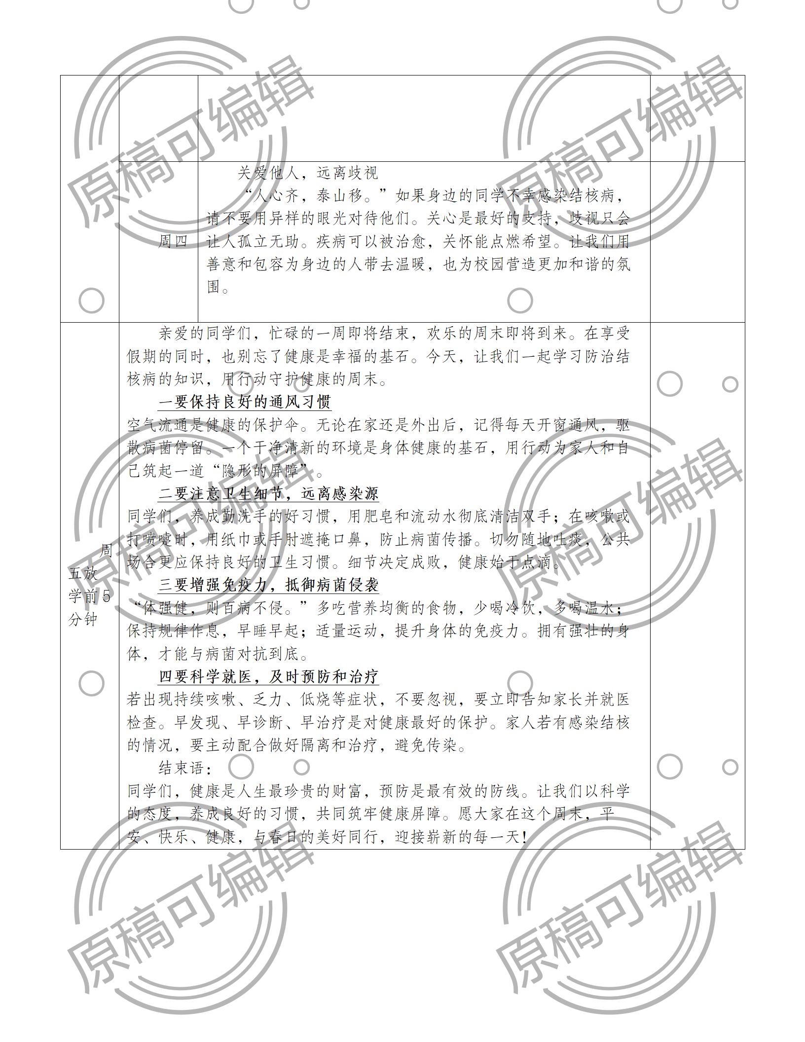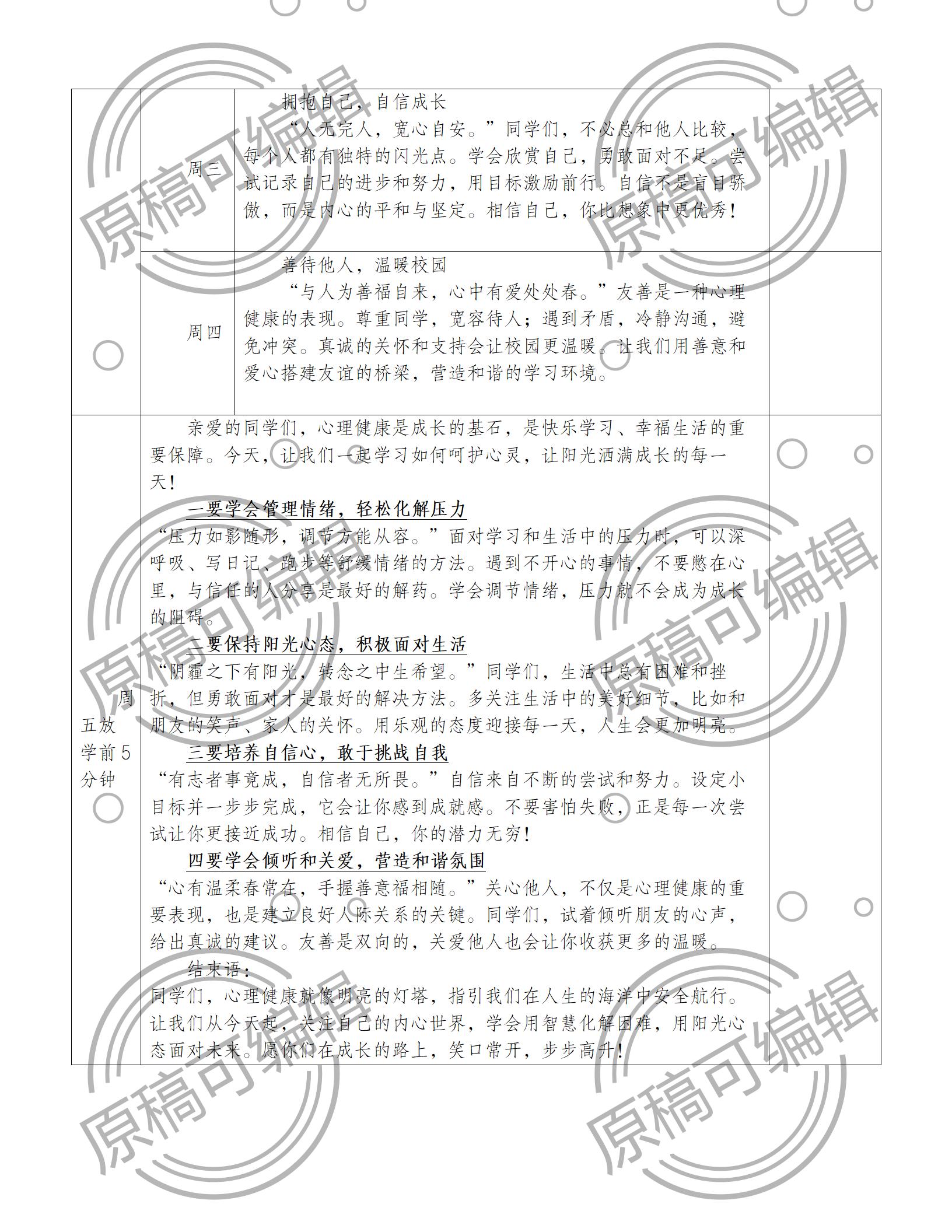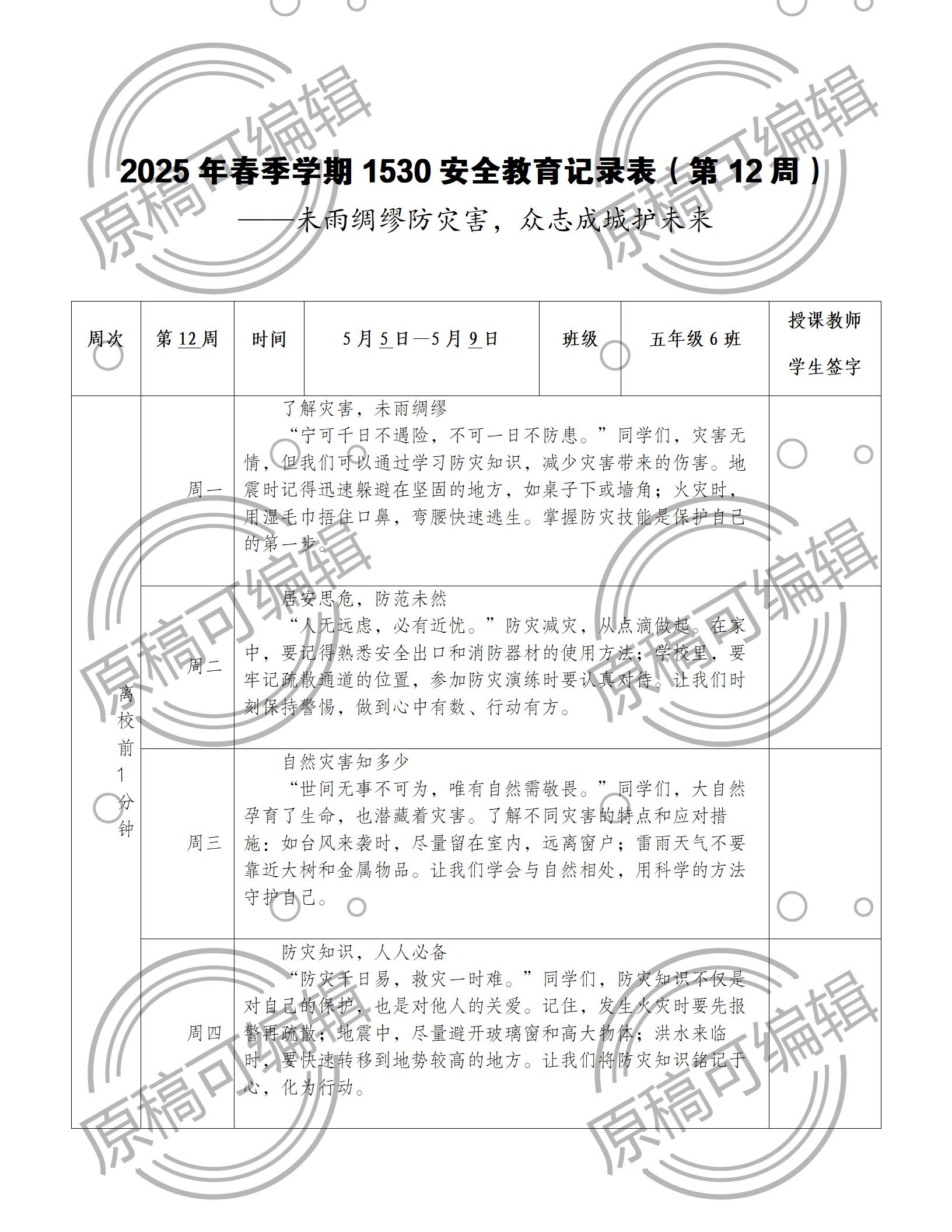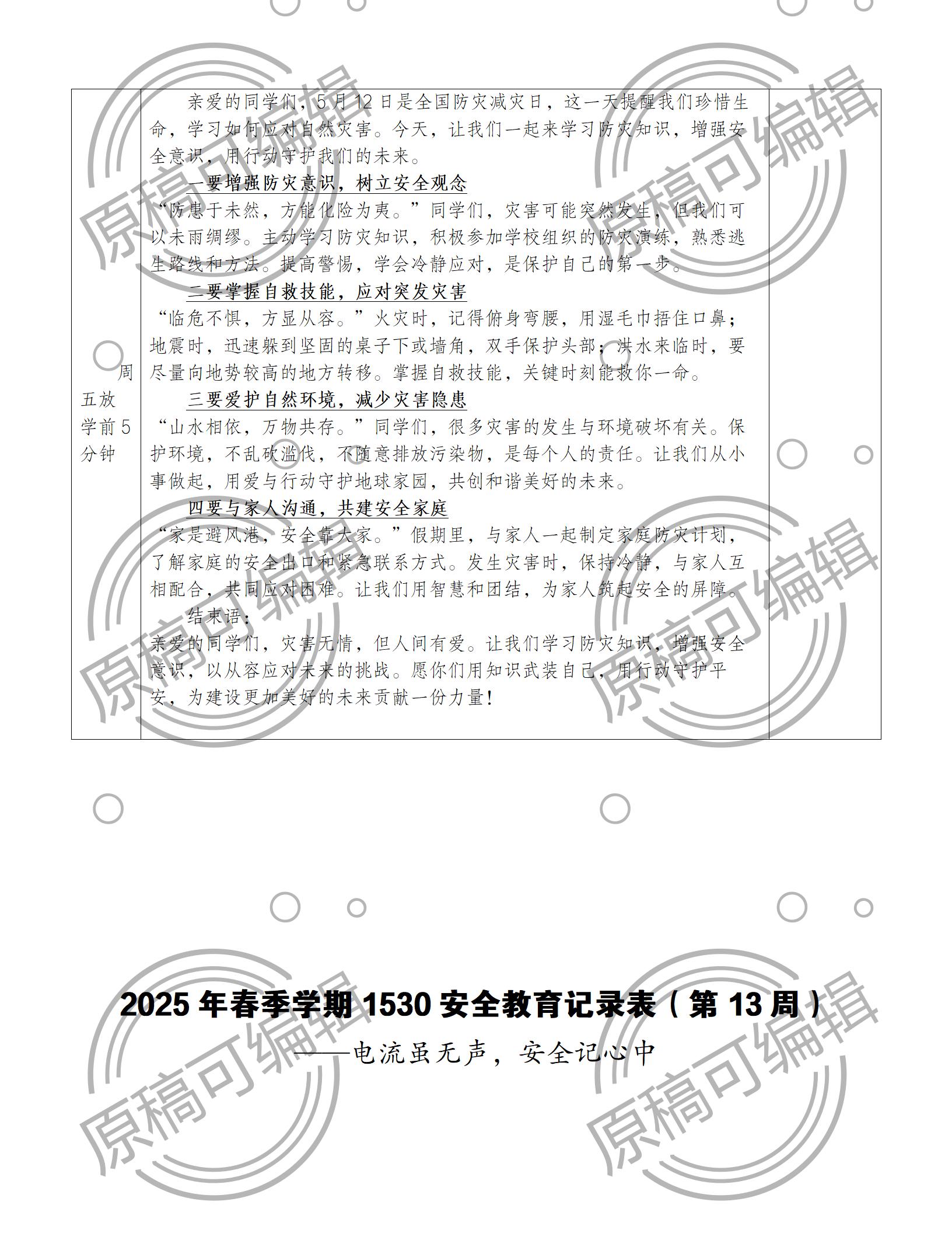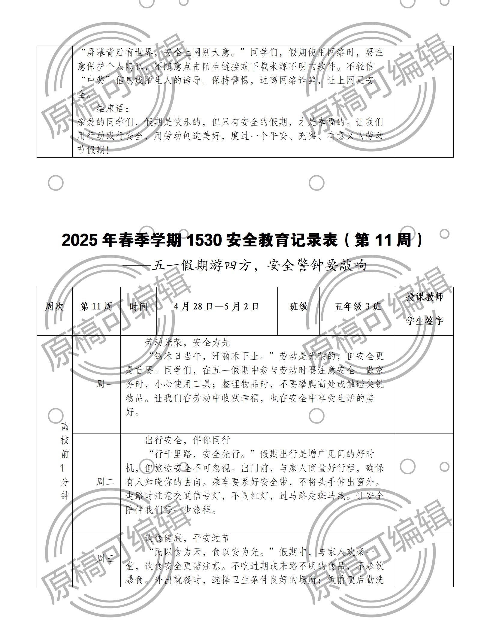 > 2025年春季1530安全教育主题安排(含20周1530安全教育记录表)