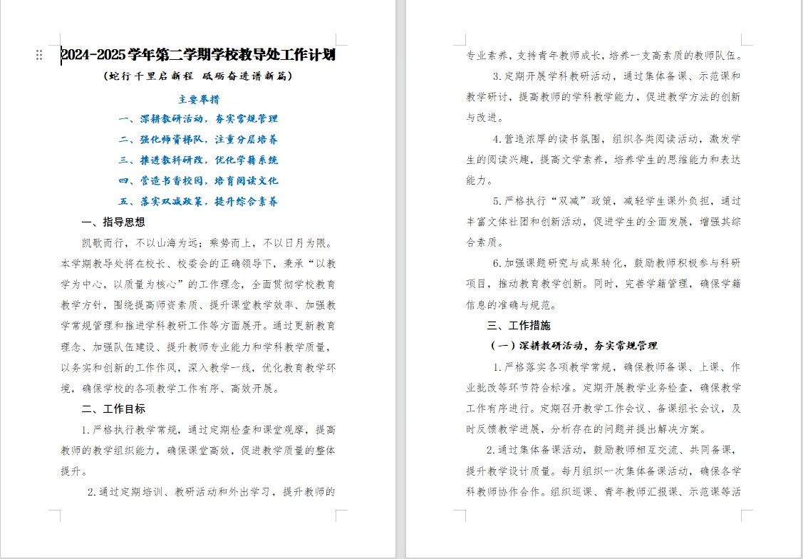 > 901 蛇行千里启新程 砥砺奋进谱新篇 2024-2025年第二学期学校教导处工作计划