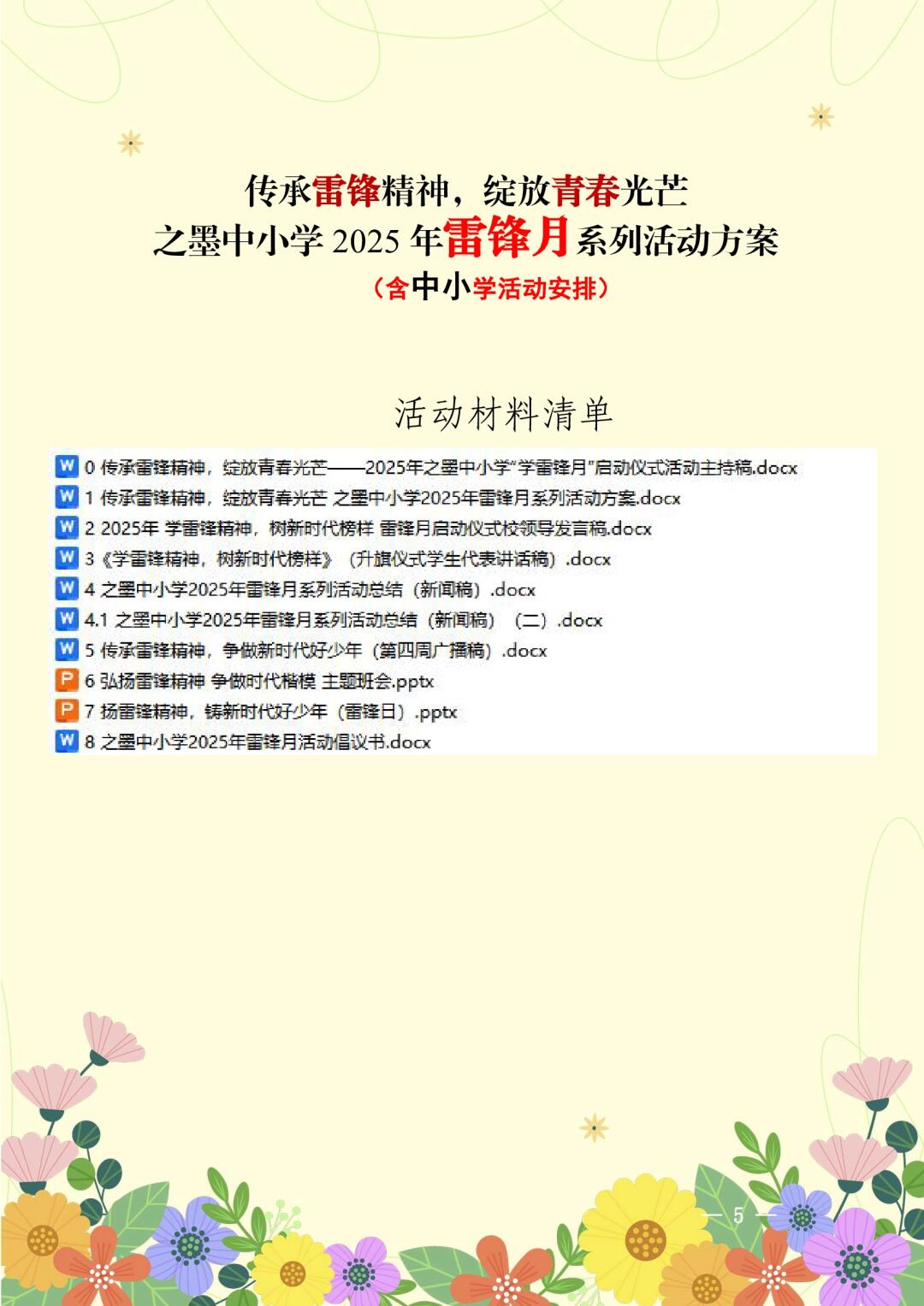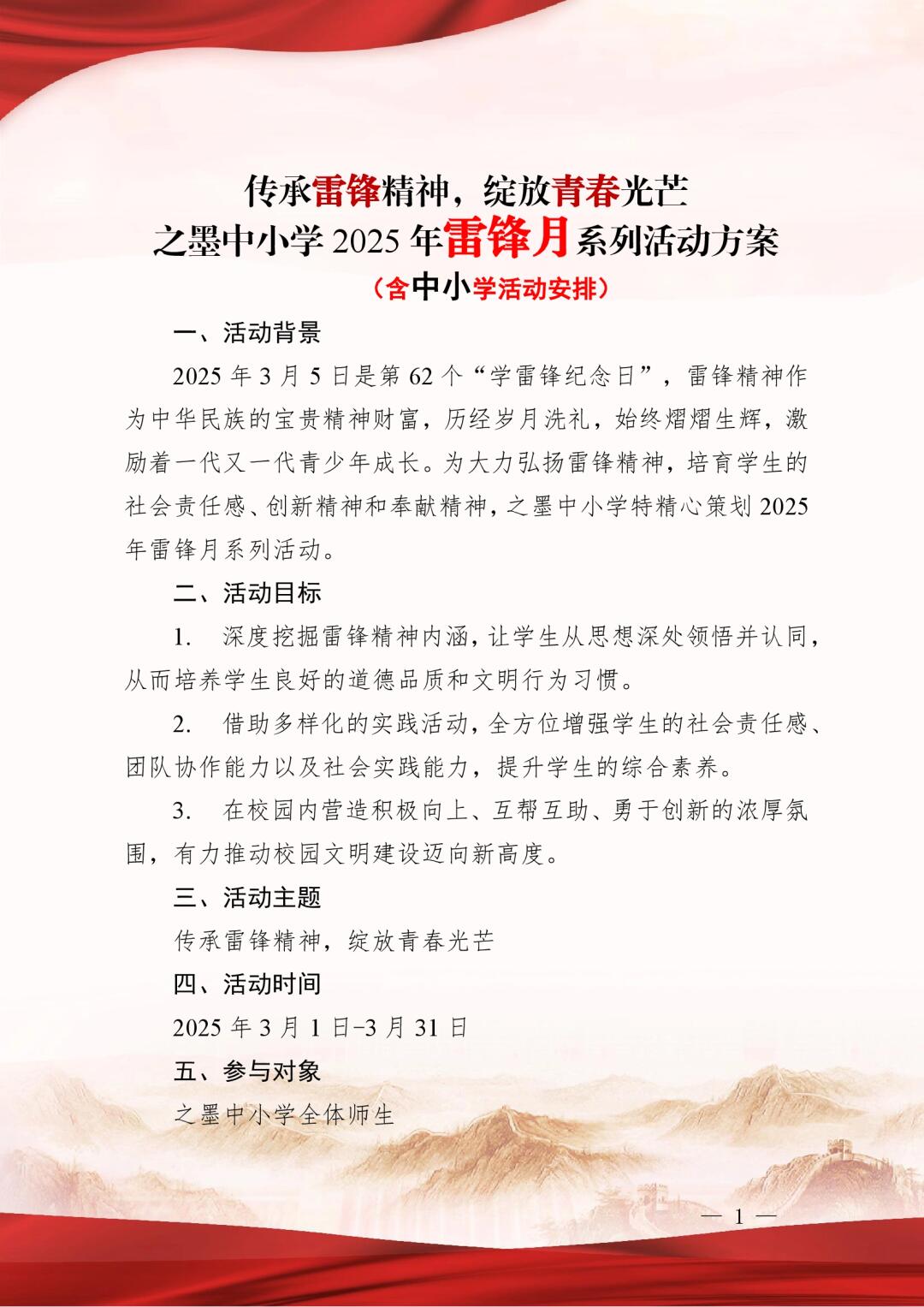 1 传承雷锋精神,绽放青春光芒 之墨中小学2025年雷锋月系列活动方案.docx