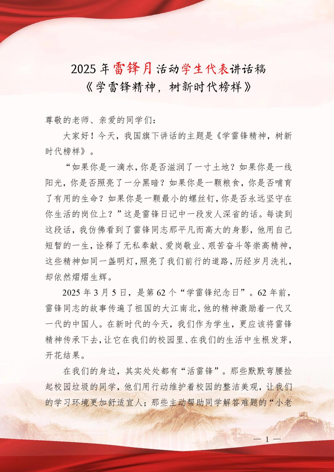 2 2025年 学雷锋精神,树新时代榜样 雷锋月启动仪式校领导发言稿.docx