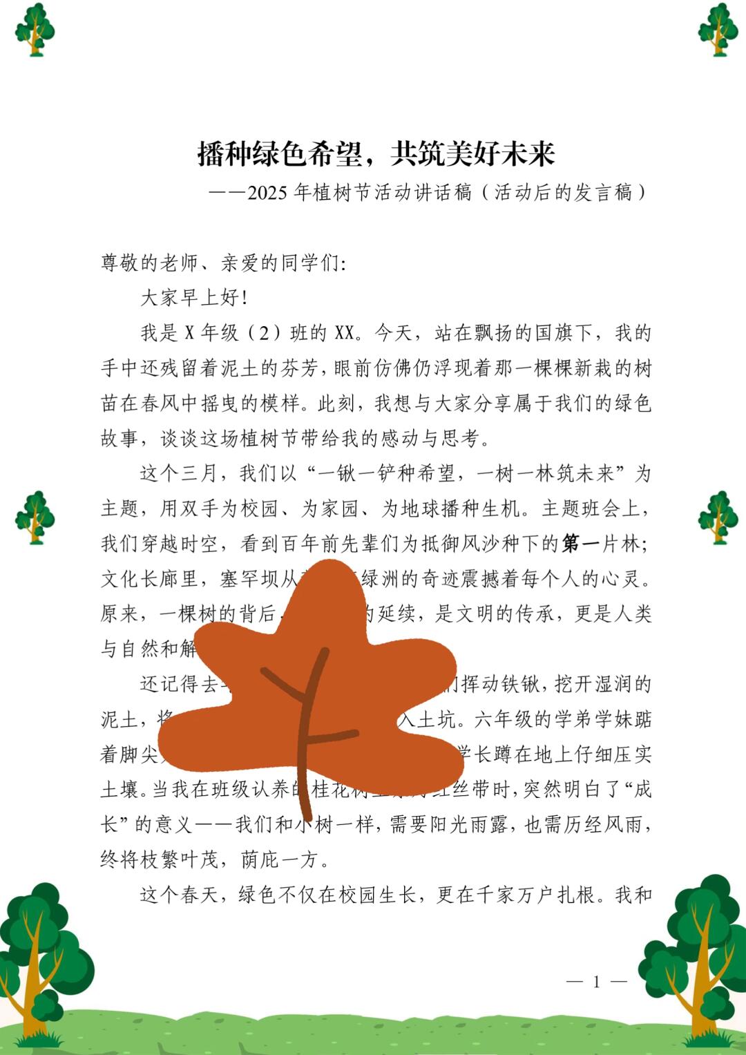 10 播种绿色希望,共筑美好未来——2025年植树节活动讲话稿(活动后的发言稿).docx