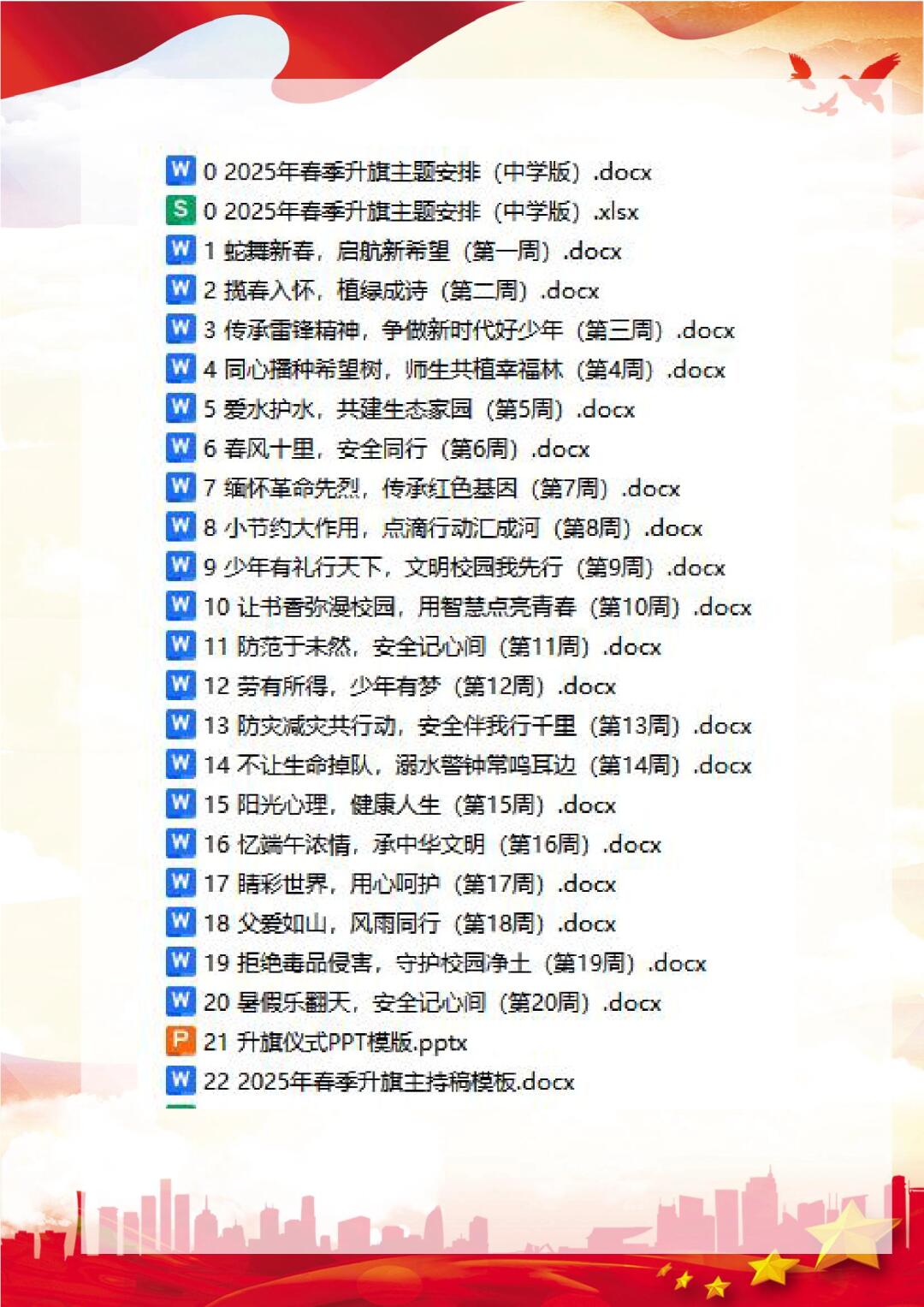 资源简介:2025年春季中学国旗下讲话稿及升旗主题安排