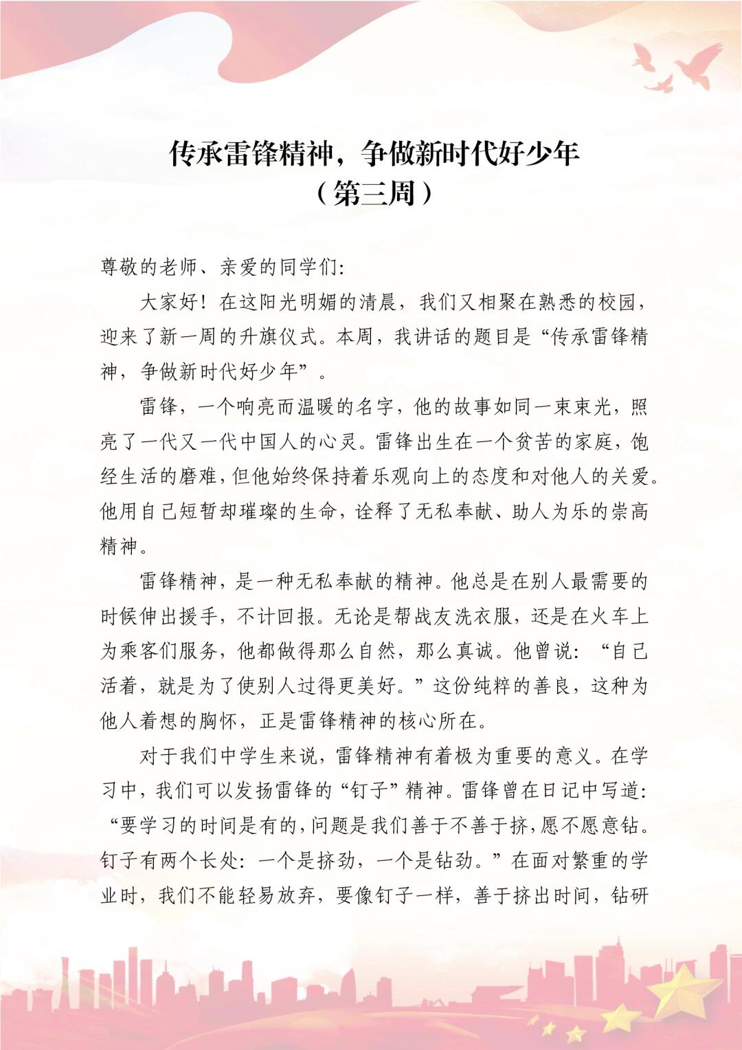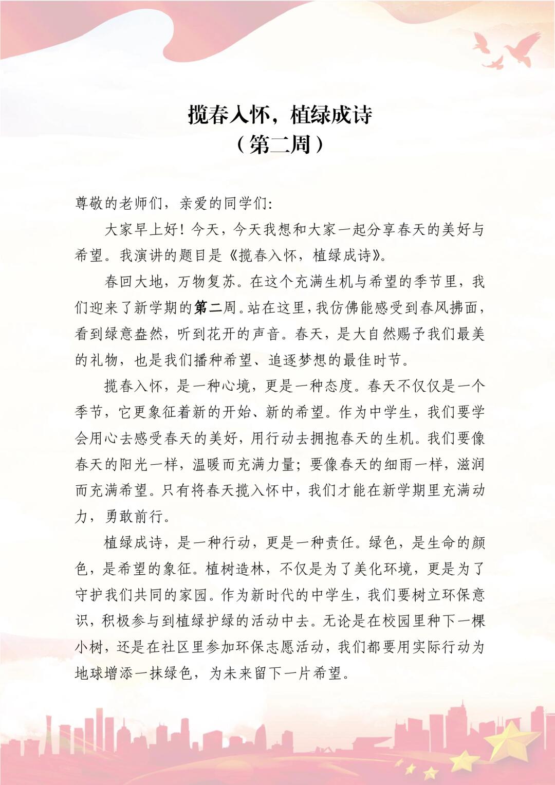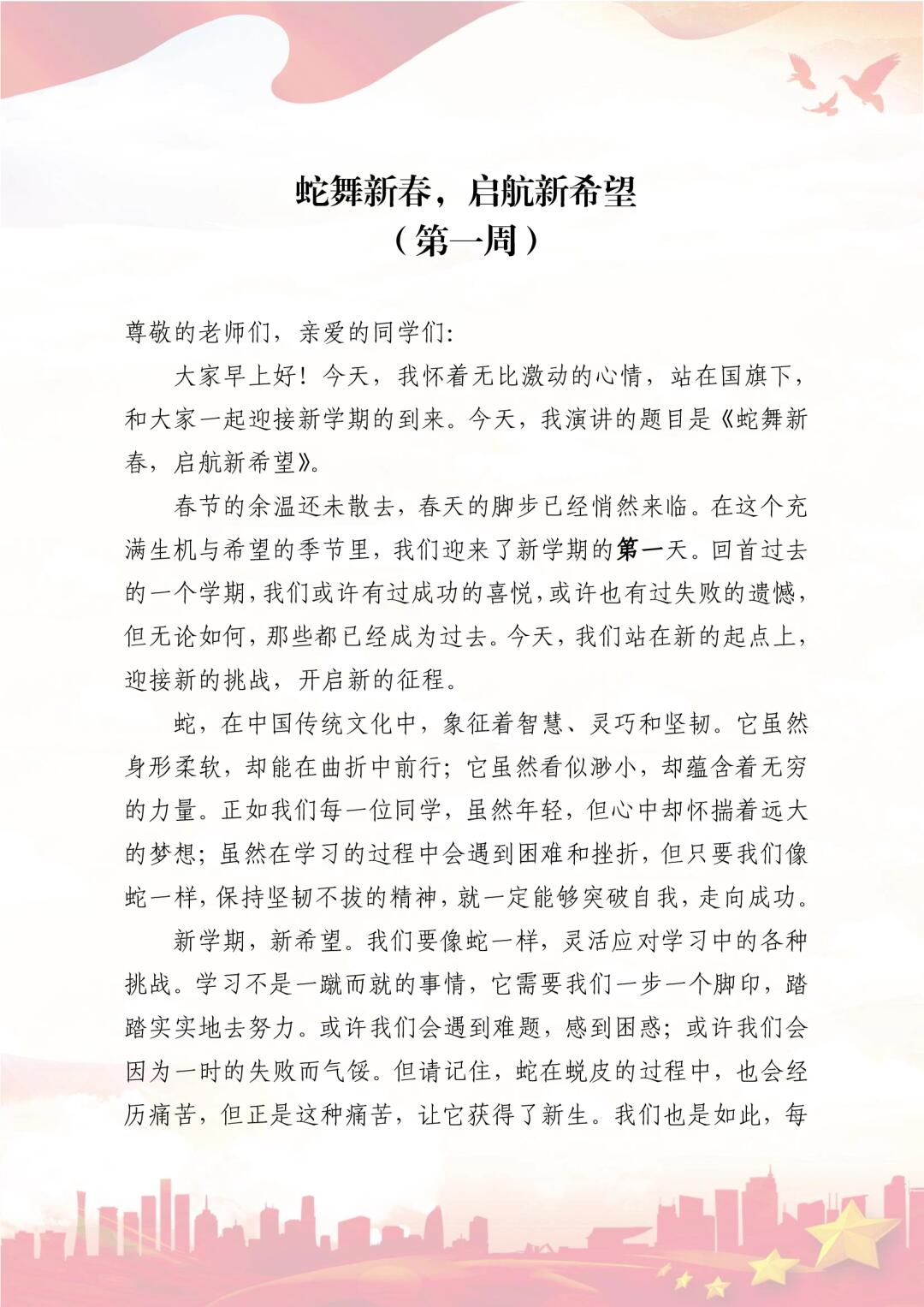 > 2025年春季中学国旗下讲话稿及升旗主题安排