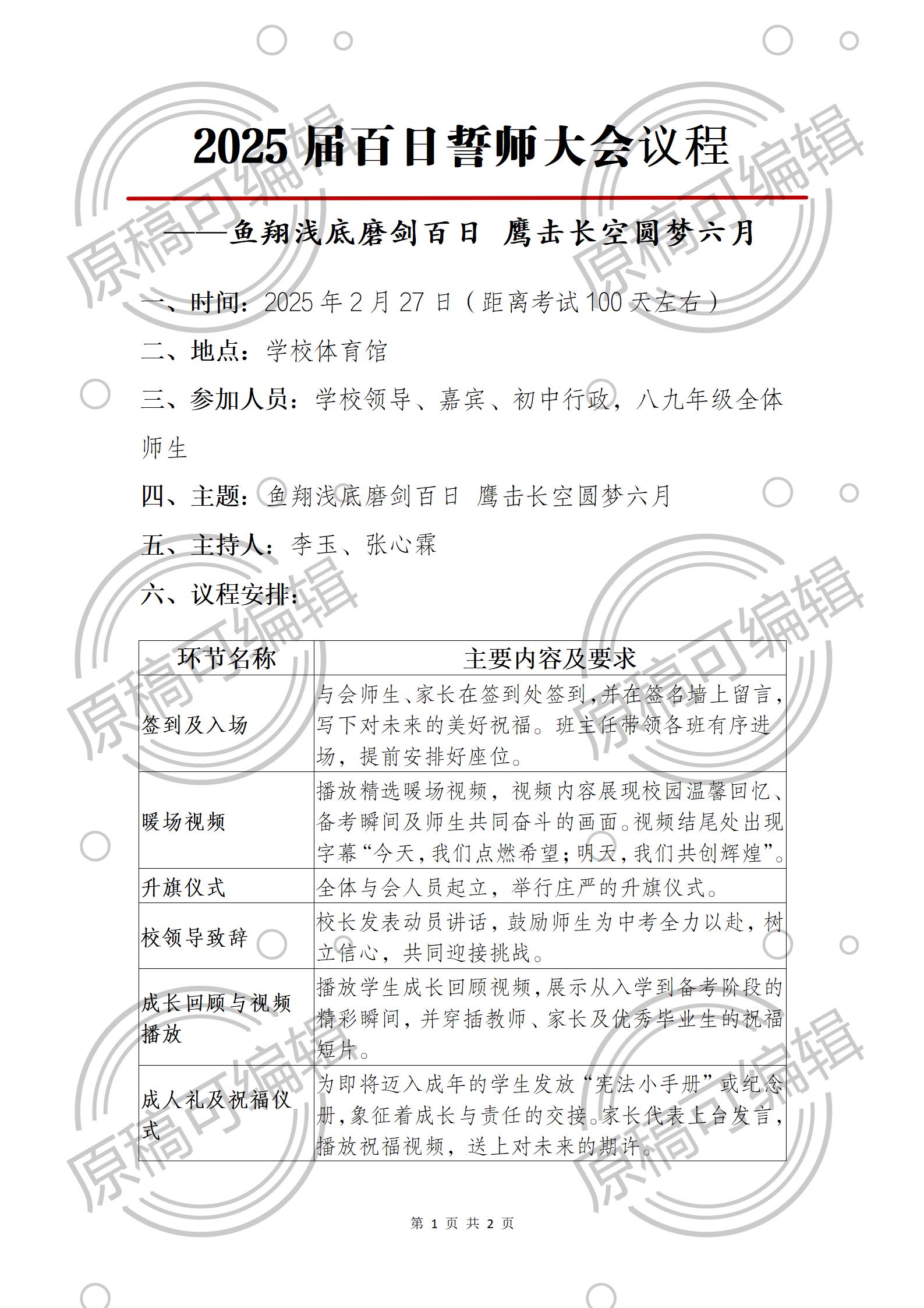 资源简介:2025届百日誓师活动材料