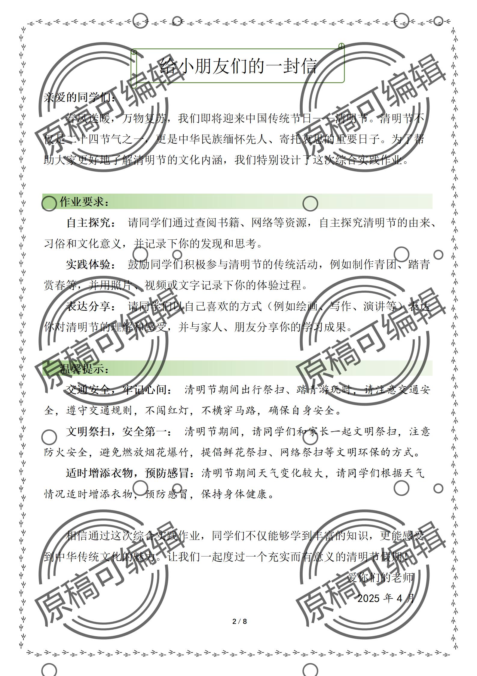 资源简介:2025清明节综合实践作业 踏青寻红色足迹,实践悟先辈精神