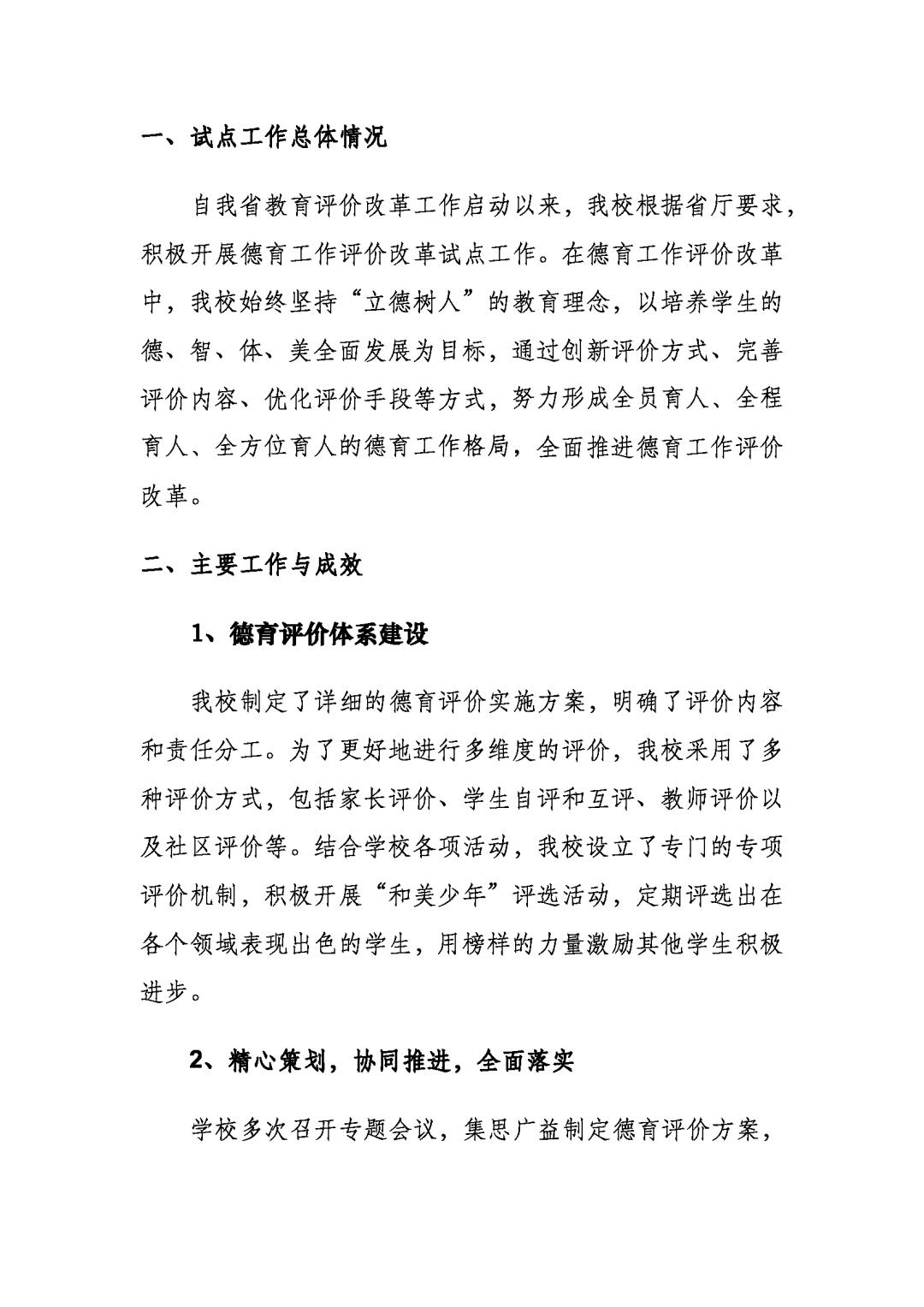 资源简介:德育工作汇报德育教育评价试点学校自评报告