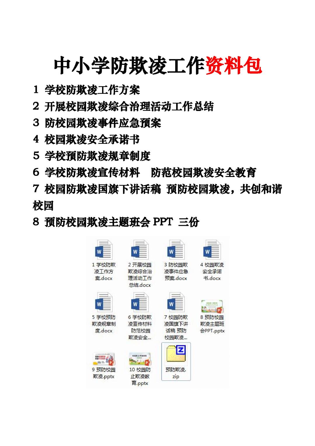 资源简介:中小学防欺凌工作资料包 抵制校园欺凌