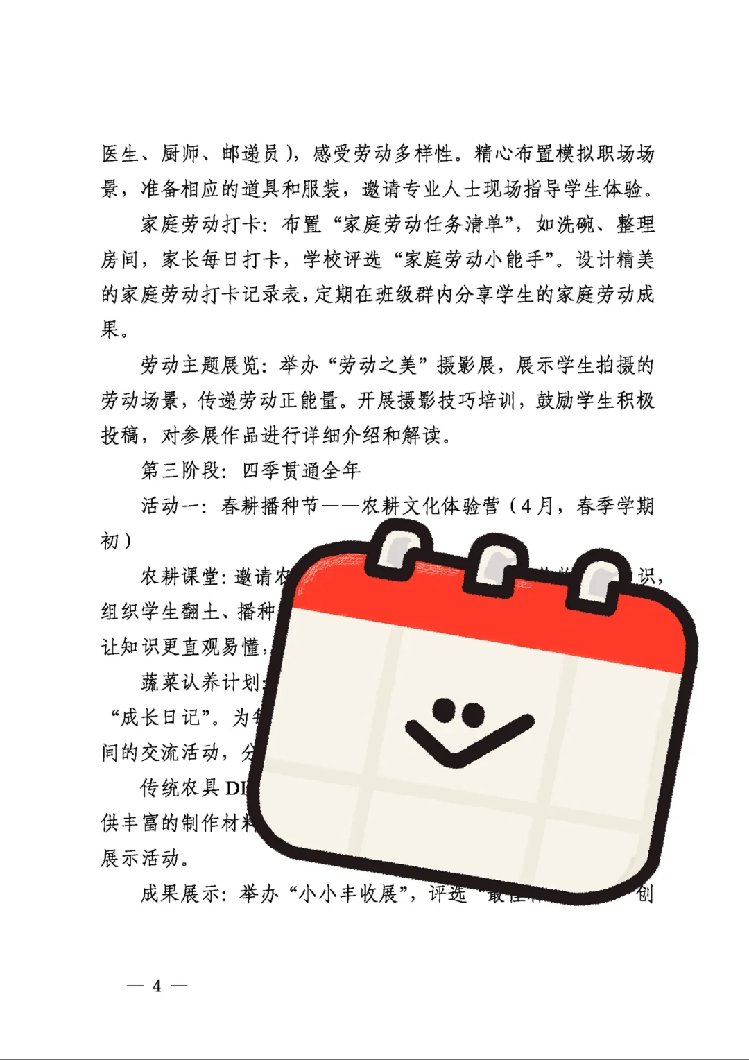 资源简介:【打破时间定义】 当别家孩子还在争论“劳动节是不是只属于五月”,我们学校直接把劳动精神焊死在日历上!从春耕到冬藏,365天都是劳动节! 【五月 labor 启动键】 ?校门口的“时光菜园”刚种下向日葵种子 教室后墙乐的高角正在搭建“未来农场” 每个班级领养的流浪猫都配了专属猫窝设计师(自愿报名) 【全年无休的劳动魔法】 六月:校园跳蚤市场,旧物改造大赛 九月:丰收节晒谷子...