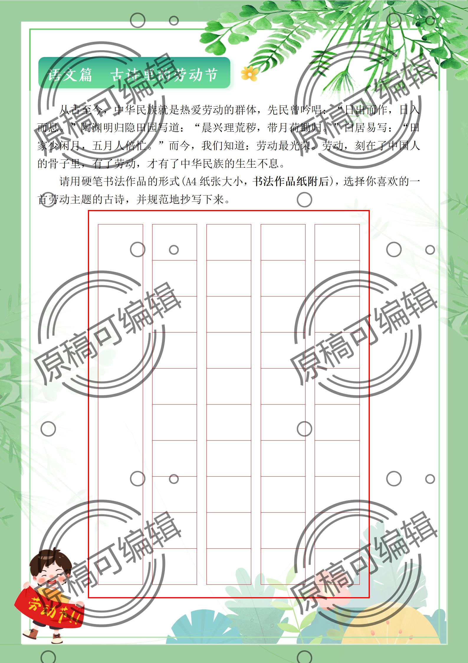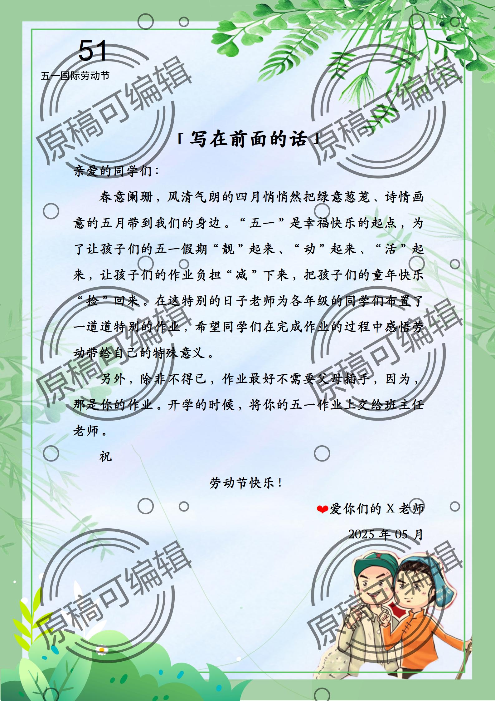 资源简介:2025年劳动节特色作业设计 含两套封面