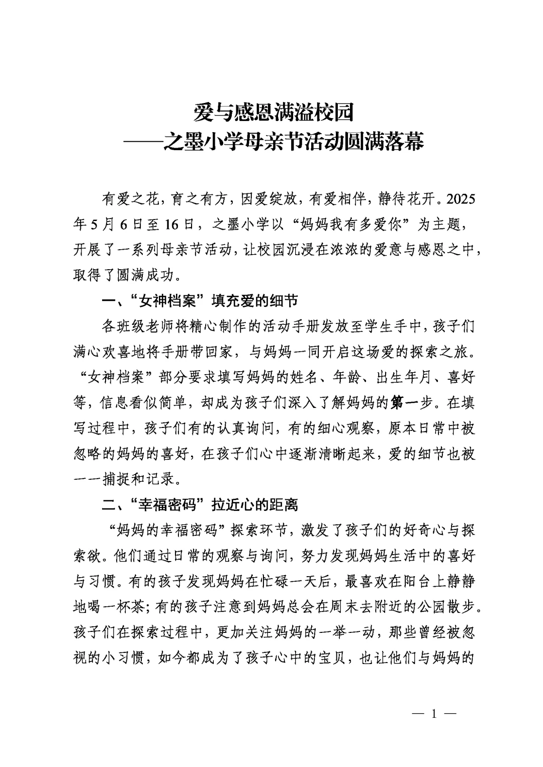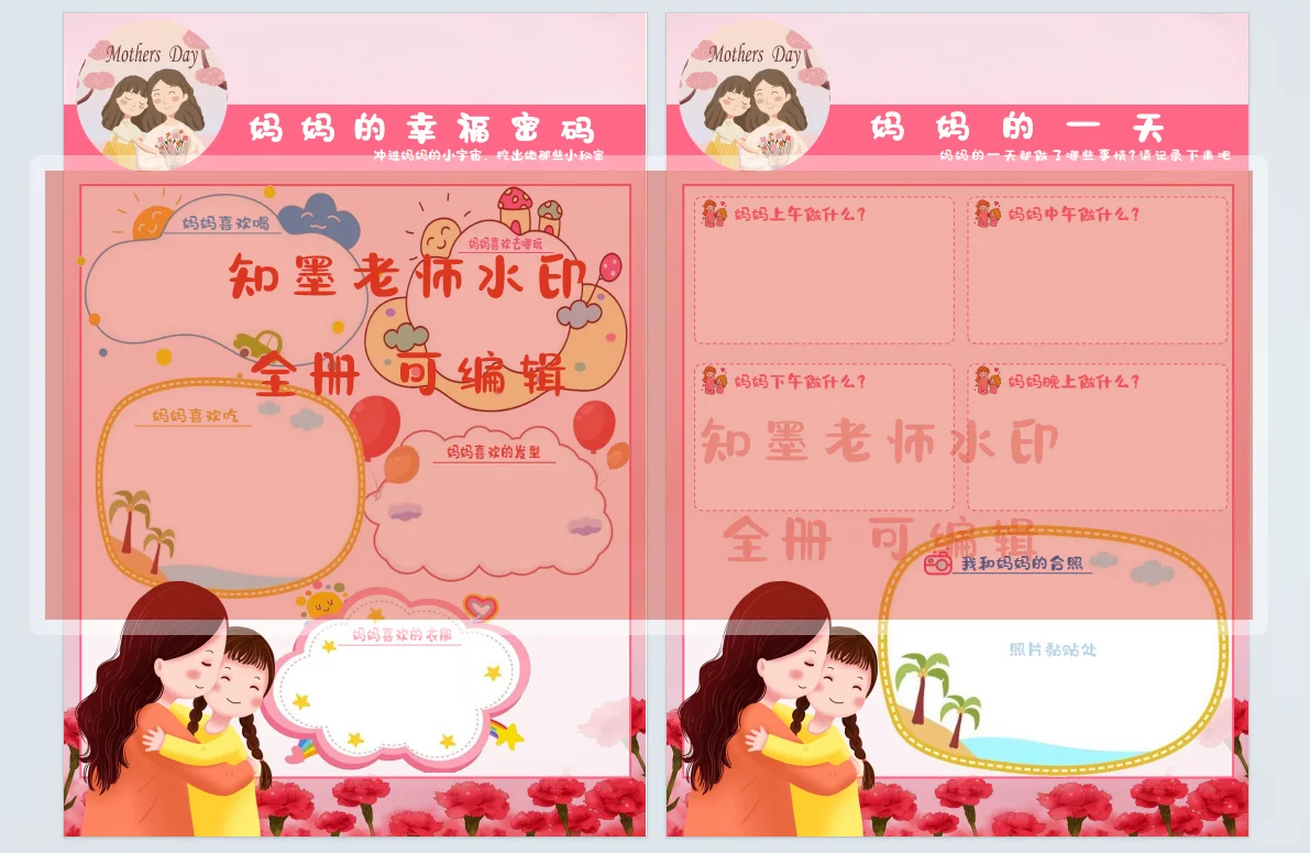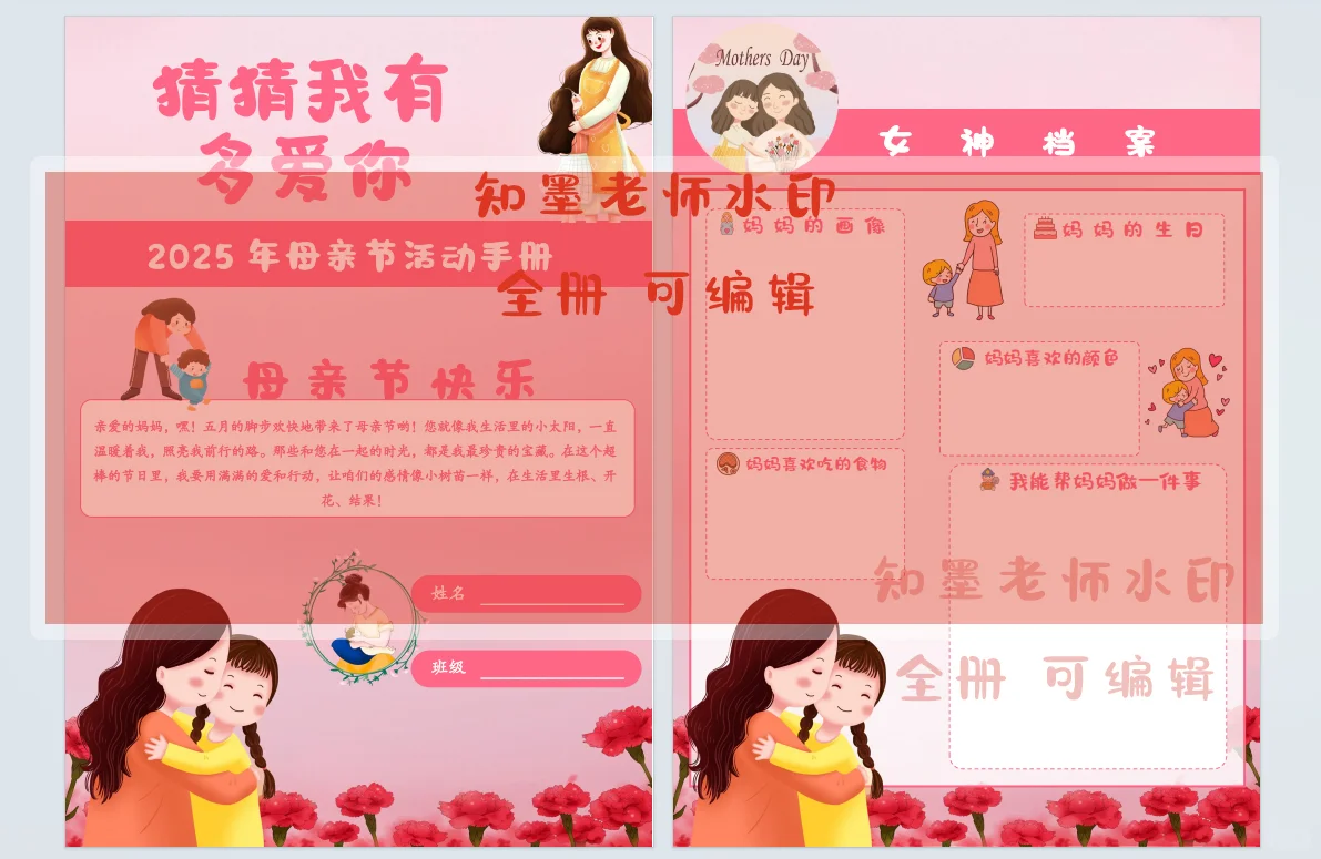 资源简介:家人们谁懂啊!之墨小学这本母亲节活动手册,直接把妈妈们的眼泪拿捏住了!每个翻看过手册的妈妈都破防了,活动意义直接拉满一本手册,藏满爱的秘密这本手册简直是个“情感宝藏”!从“女神档案”开始,孩子们认真地写下妈妈的喜好。有个妈妈看到孩子写“妈妈最喜欢的颜色是粉色,因为我送她的发卡是粉色的”,瞬间眼眶就红了原来在孩子心里,这些小细节都记得这么清楚。用手册解锁妈